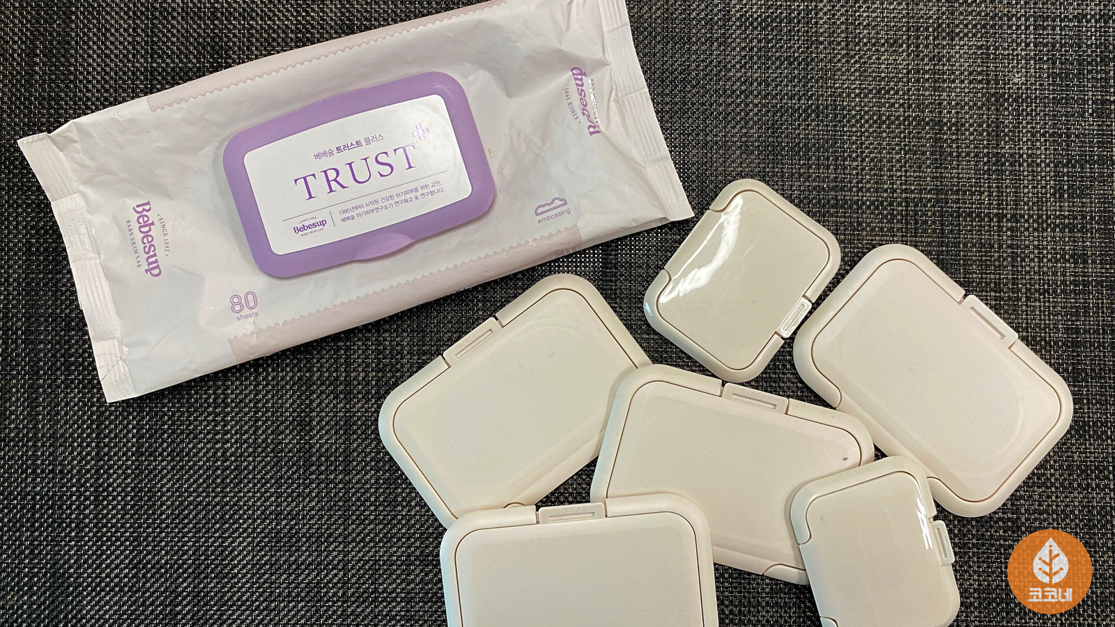 기존 물티슈에 달려있던 뚜껑을 붙여서