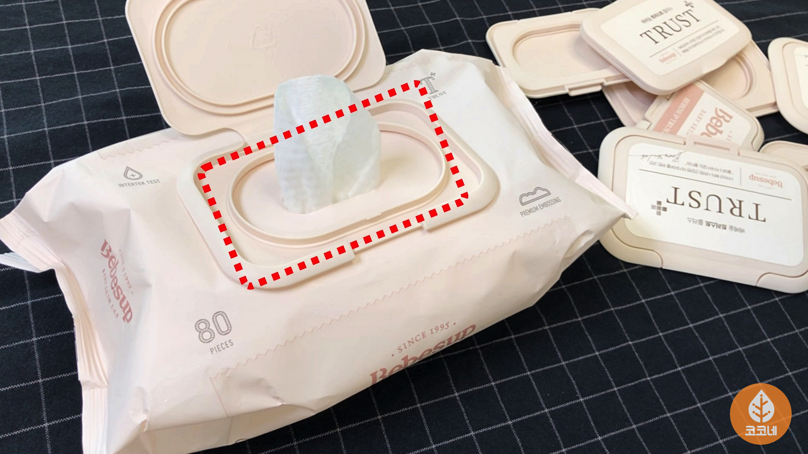 기존 물티슈에 달려있던 뚜껑을 붙여서