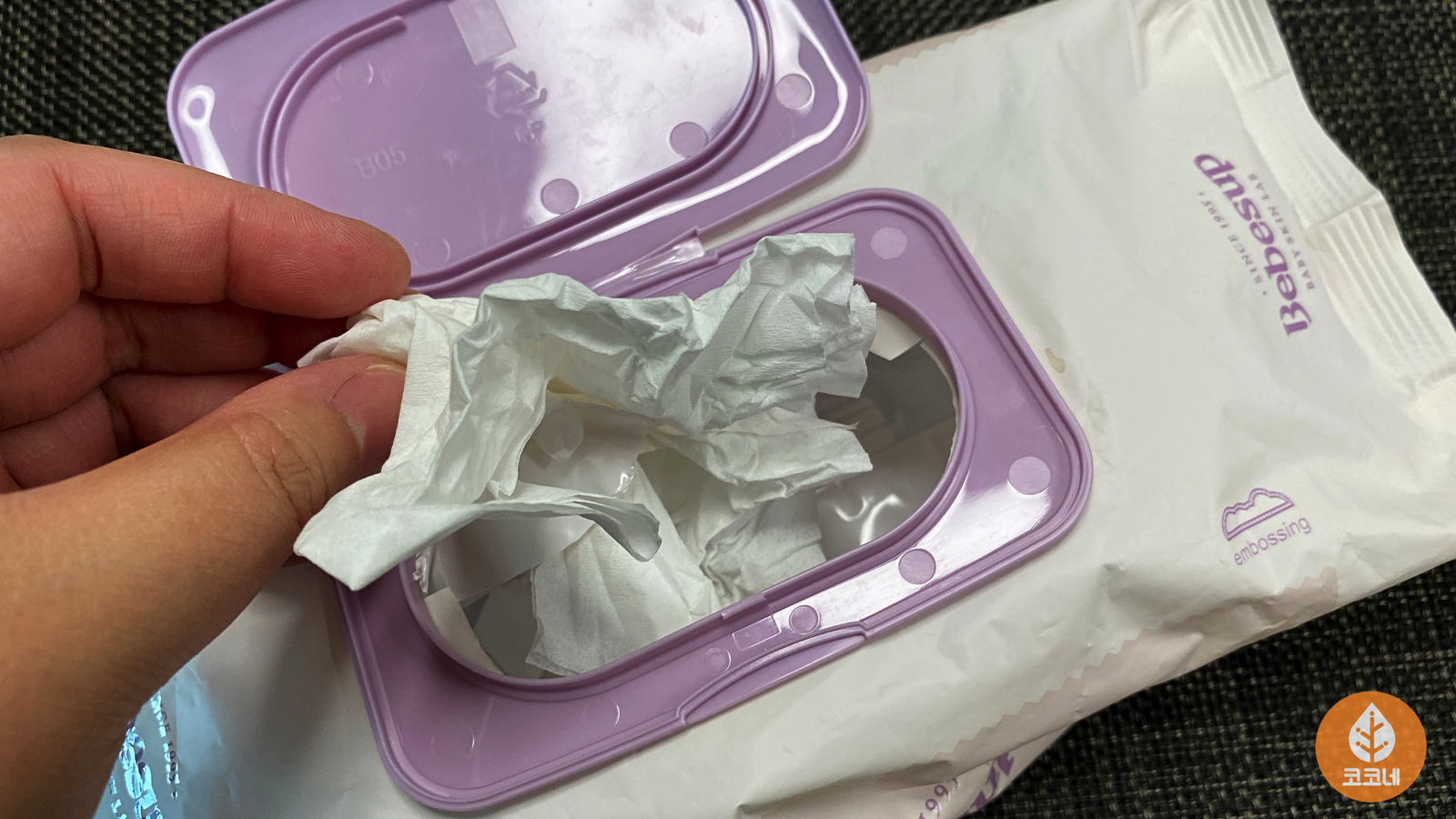 물티슈를 다 쓰고 빈 케이스만 남았어요.