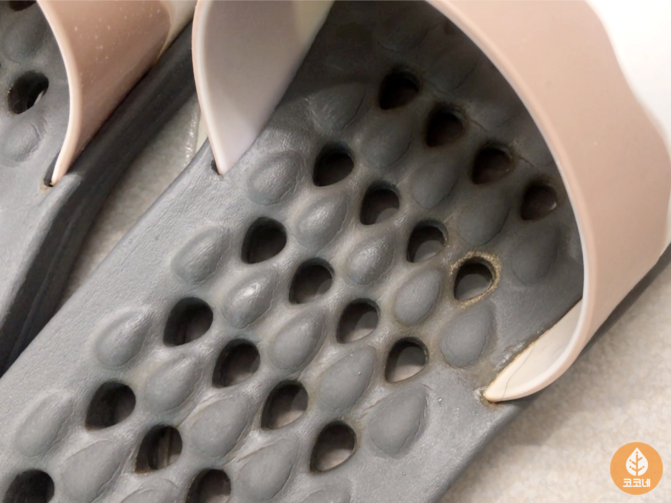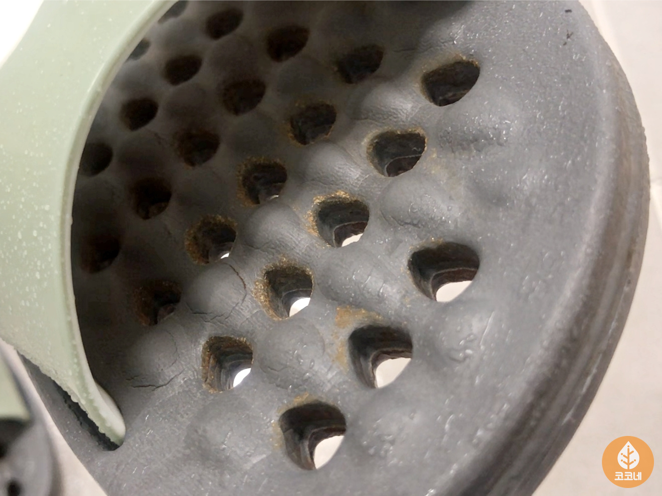 슬리퍼에서 떨어져나온 물때를 확인할 수 있어요.