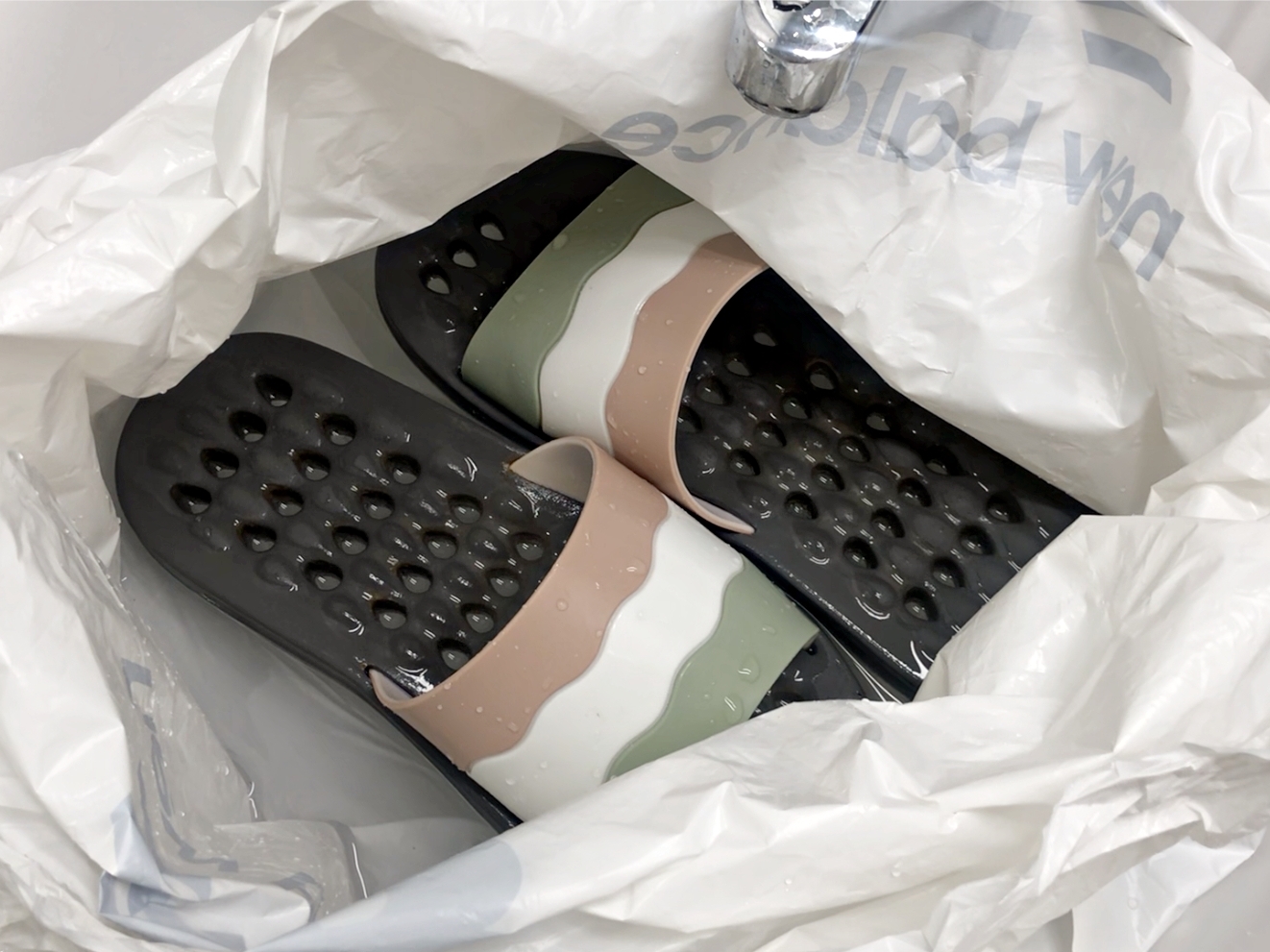 닦지 않아도 OK! 화장실 슬리퍼 물때 제거 비닐봉지에 맡겨보세요~