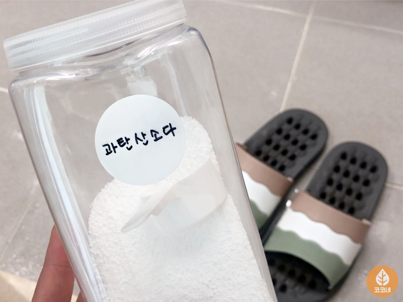 화장실 슬리퍼를 넣고 살살 흔들어 주세요.