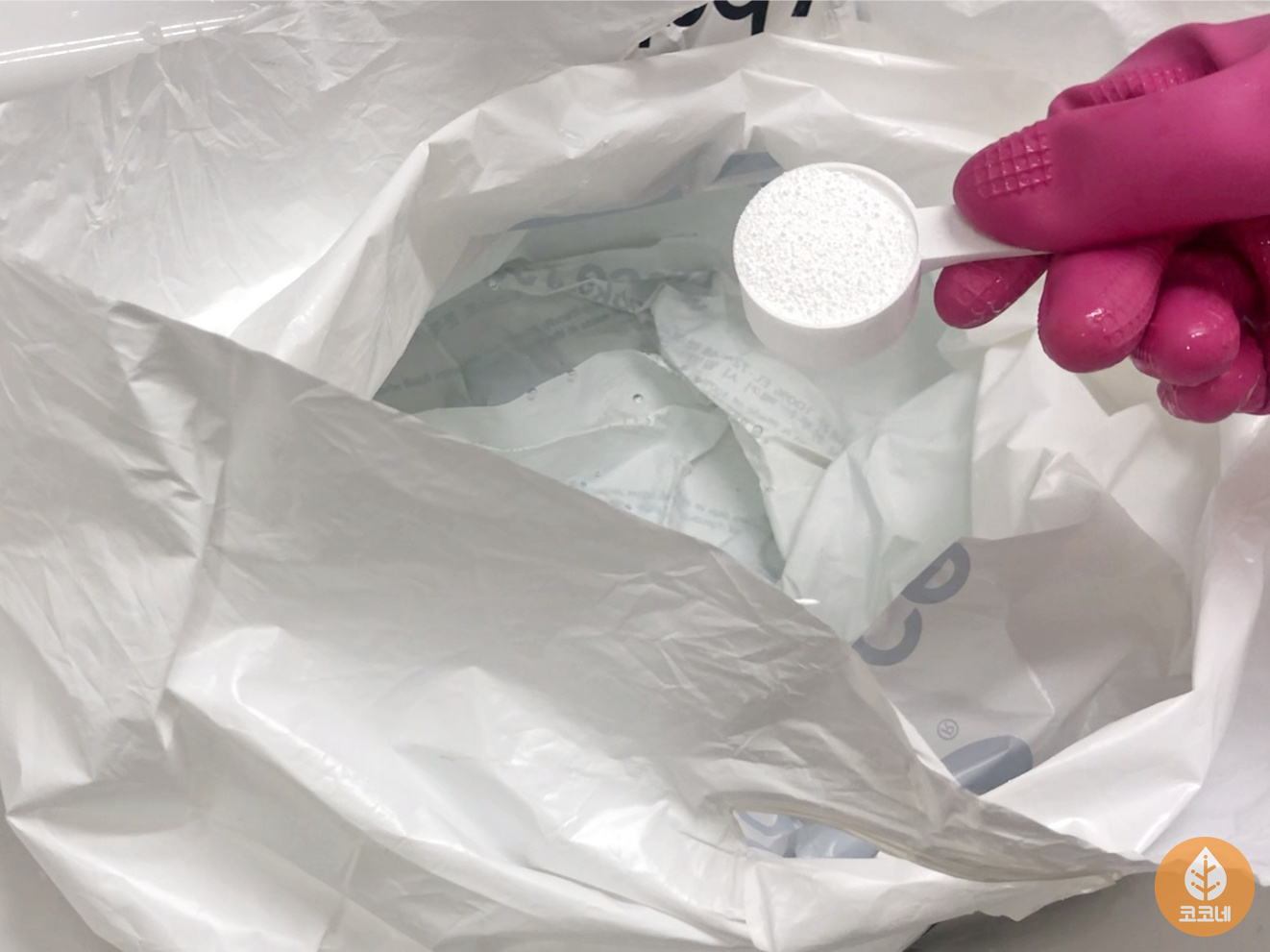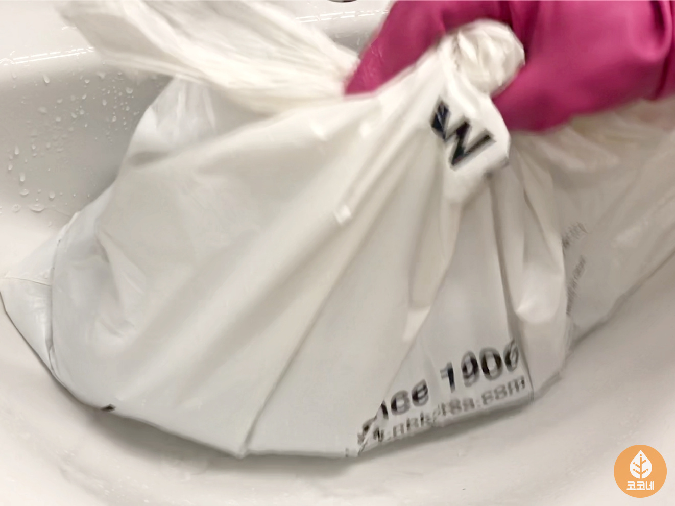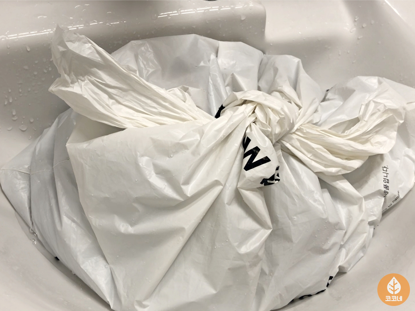 비닐봉지 입구를 묶고 한번 더 요리조리 흔들어 주시고요.