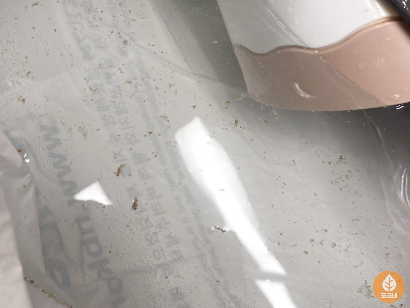 슬리퍼에서 떨어져나온 물때를 확인할 수 있어요.