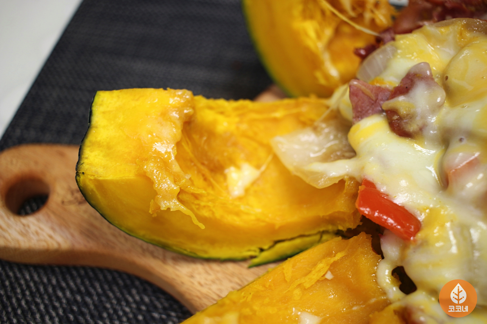 단호박에 듬뿍 채워서 치즈 뿌리고