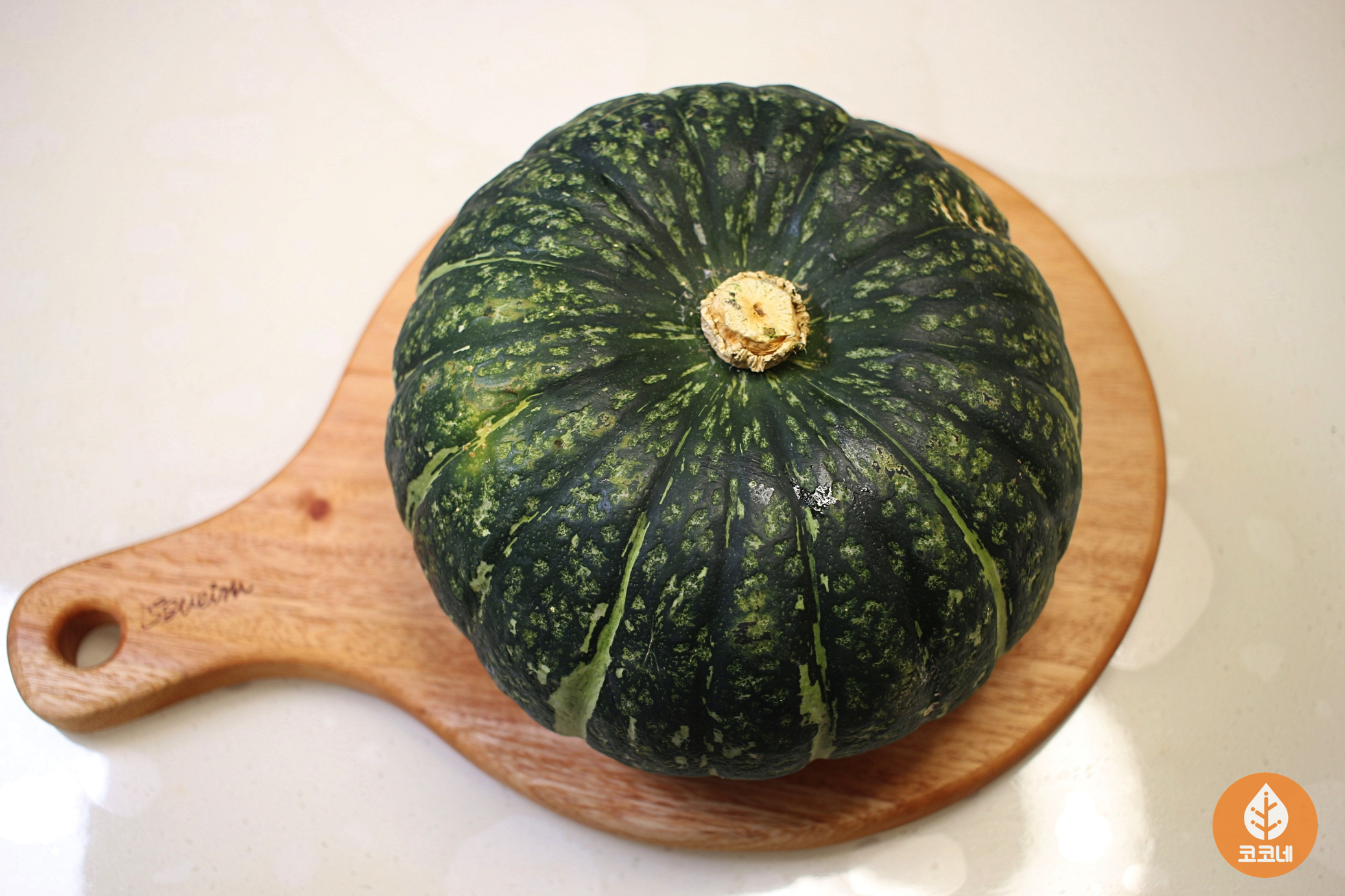 상대적으로 더 딱딱한 단호박 꼭지를