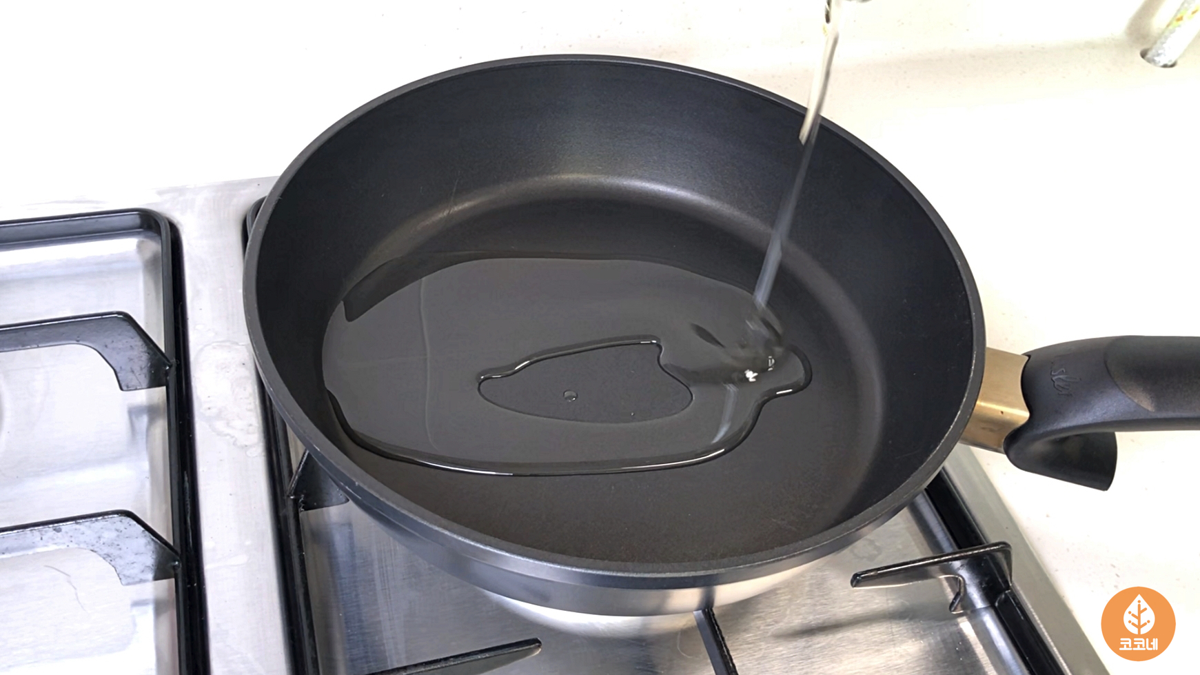 먼저 프라이팬에 기름을 넉넉하게 두르고요.
