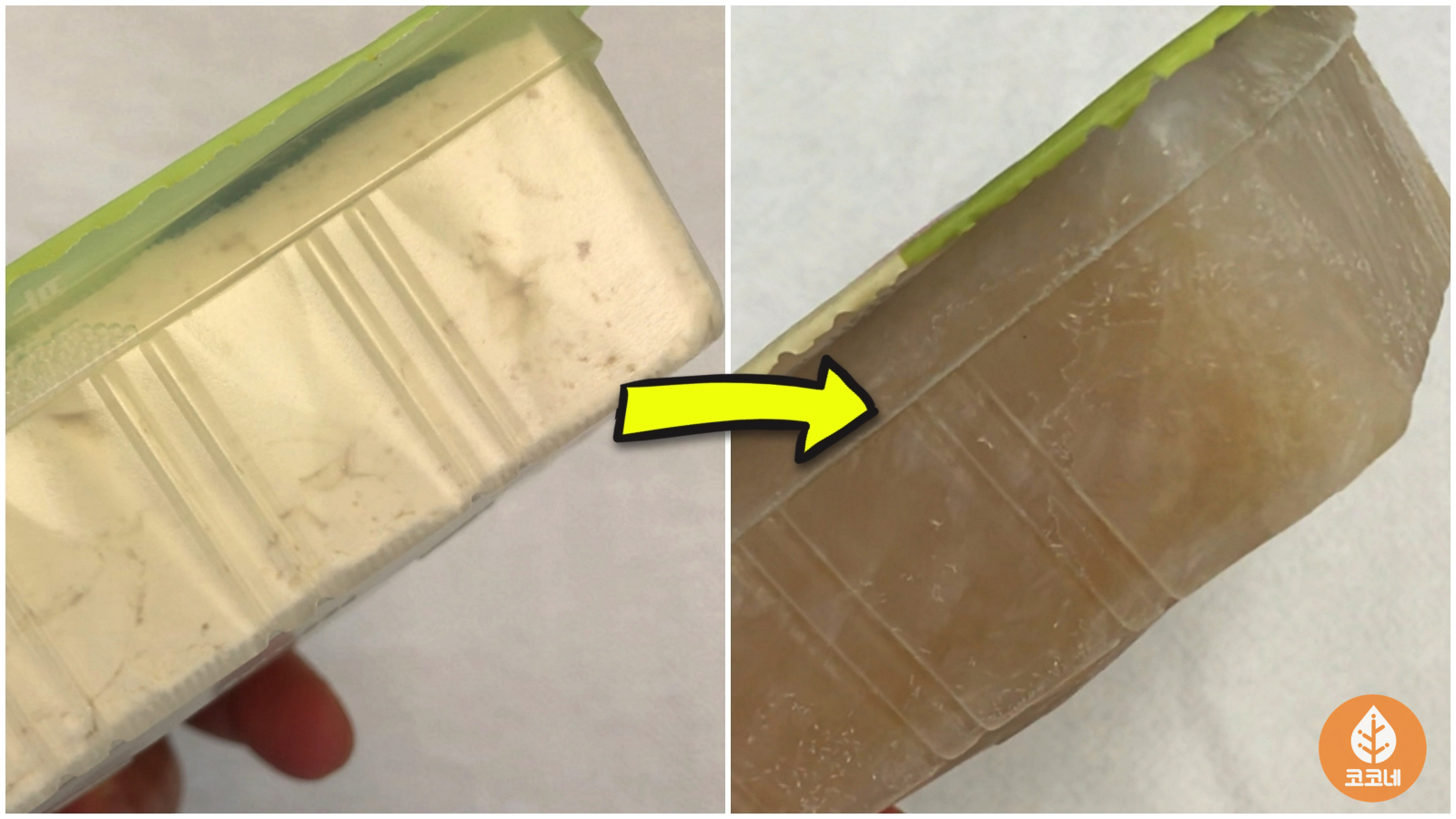 좌측이 냉동실에 넣기 전,