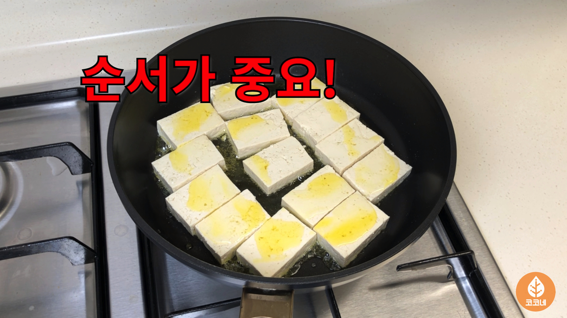 두부를 구울 때 넣는 기름은 순서가 중요해요.