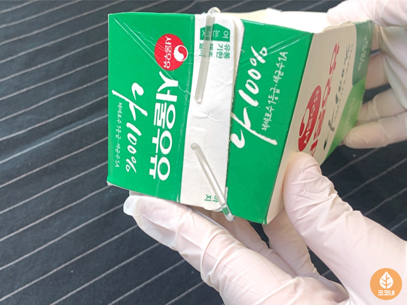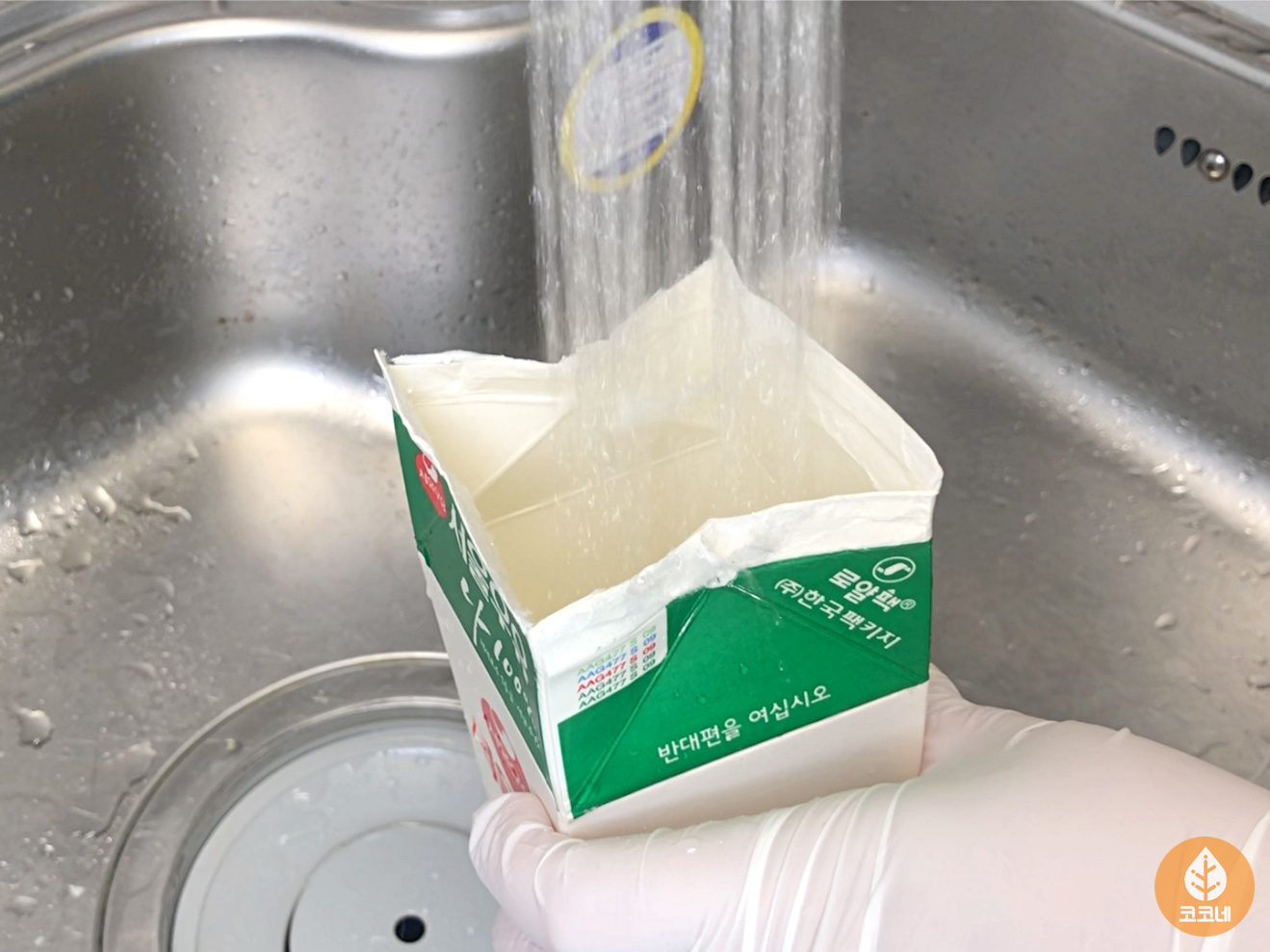 우유갑에 물 채우고 베이킹소다 한숟가락 풀어서