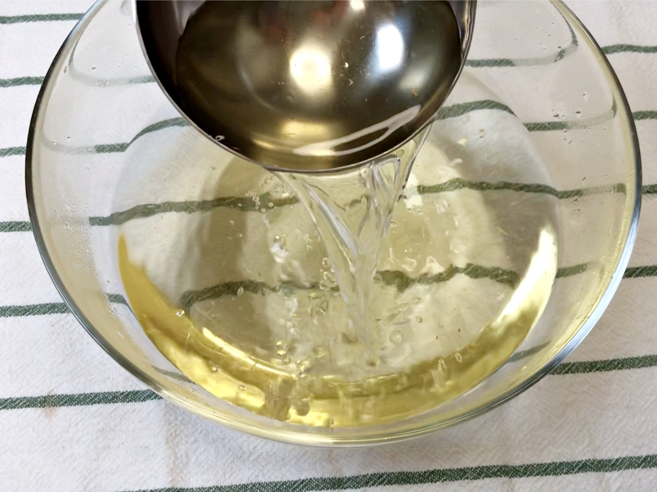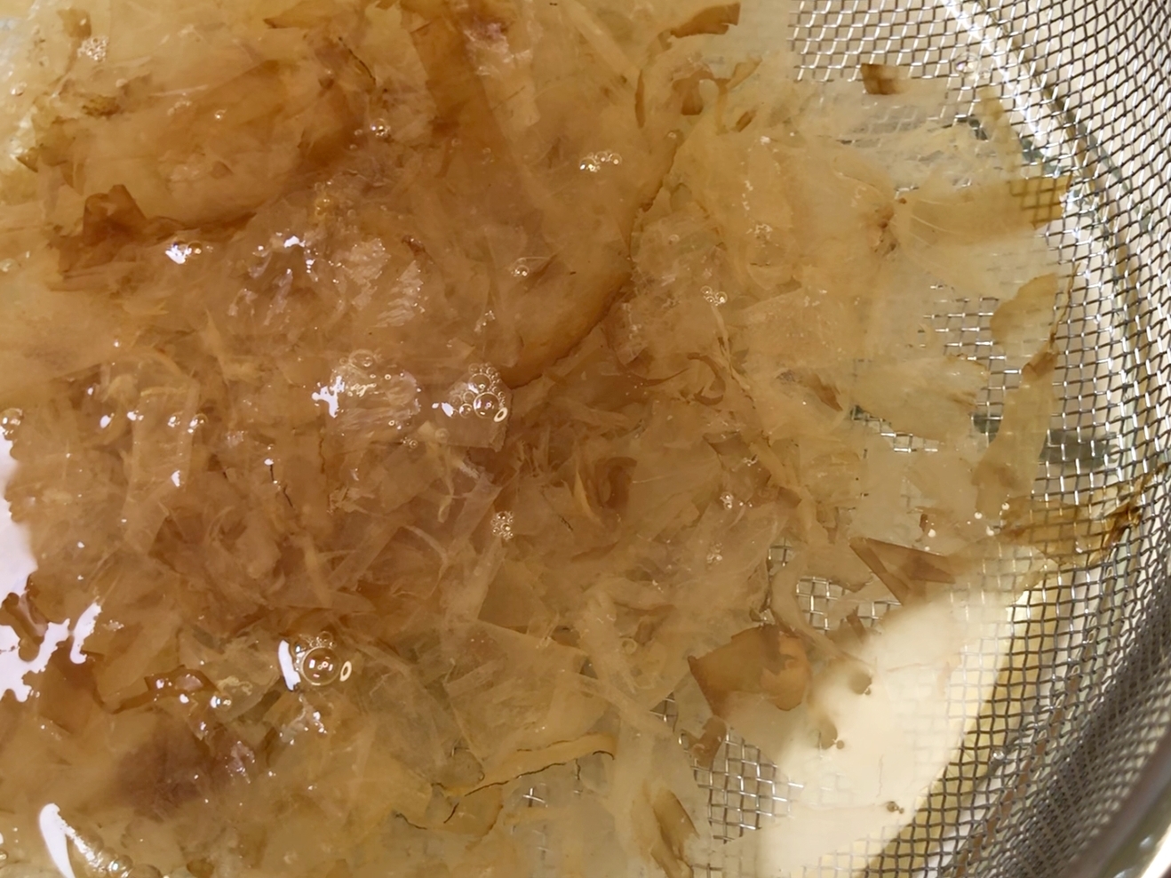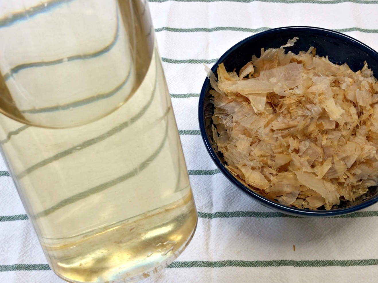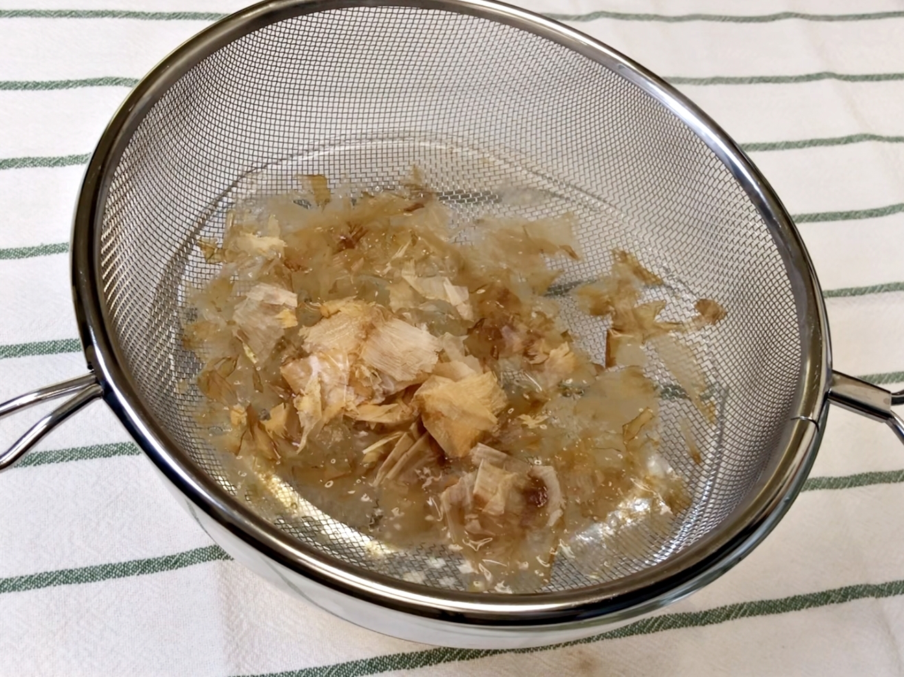 깔끔한 가쓰오부시 육수가 완성이에요.
