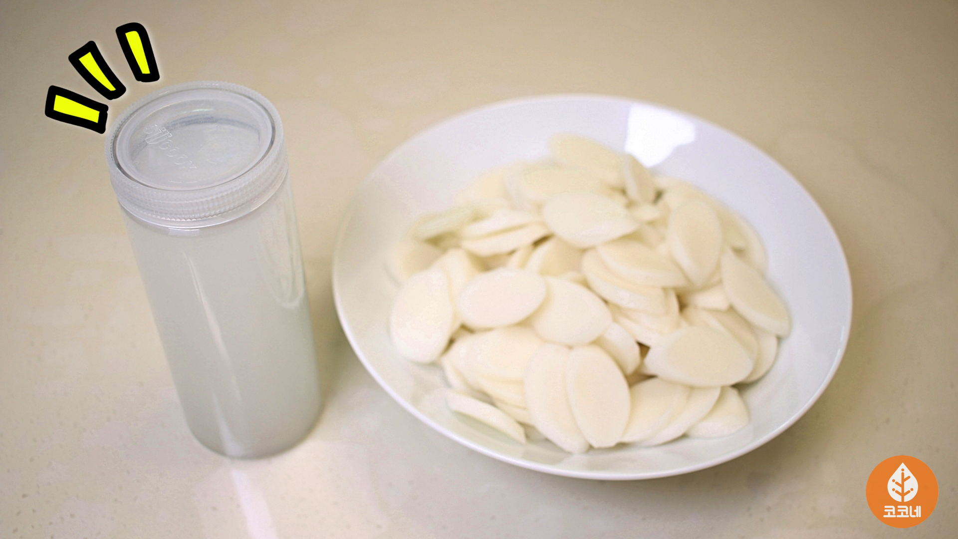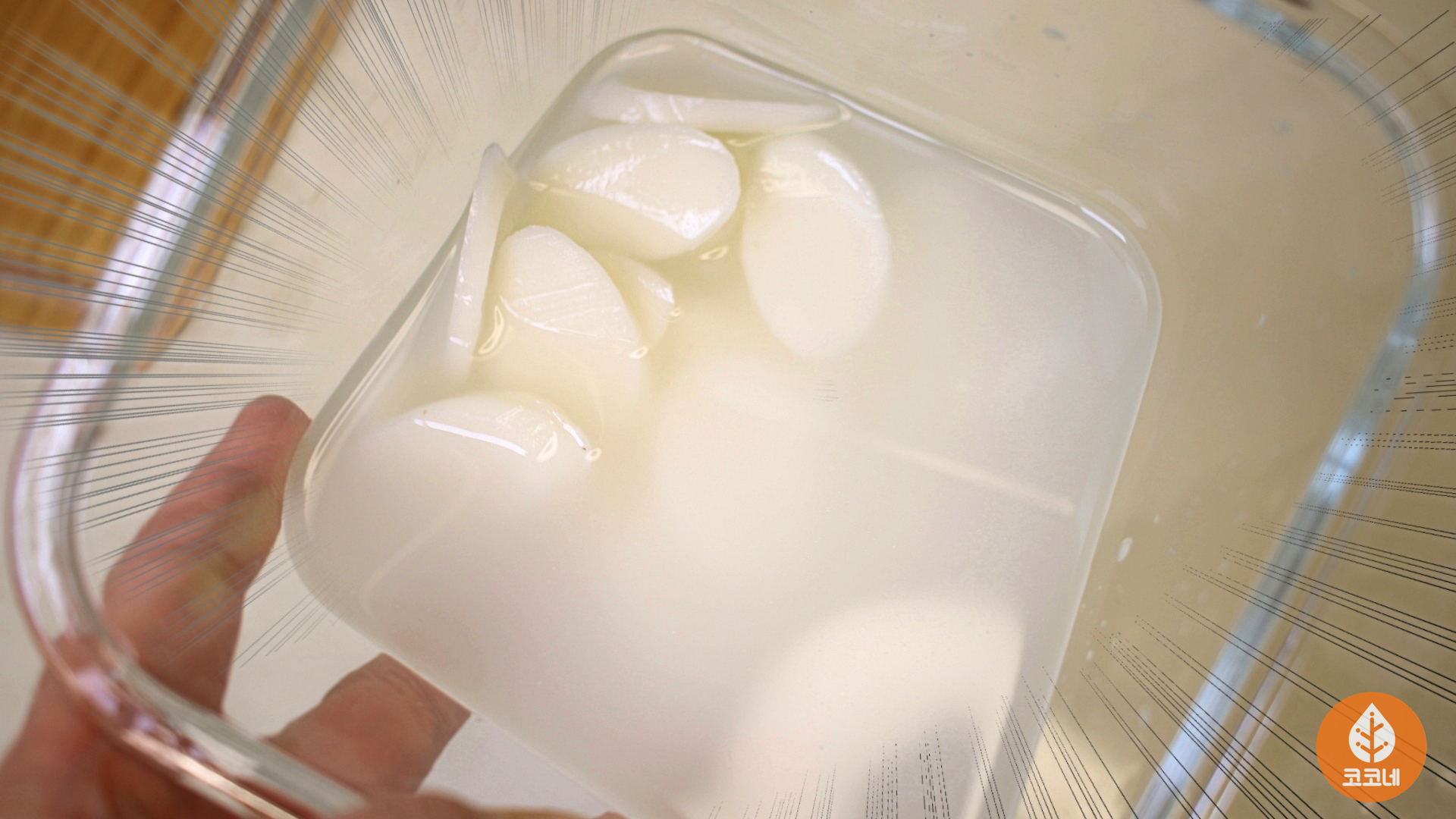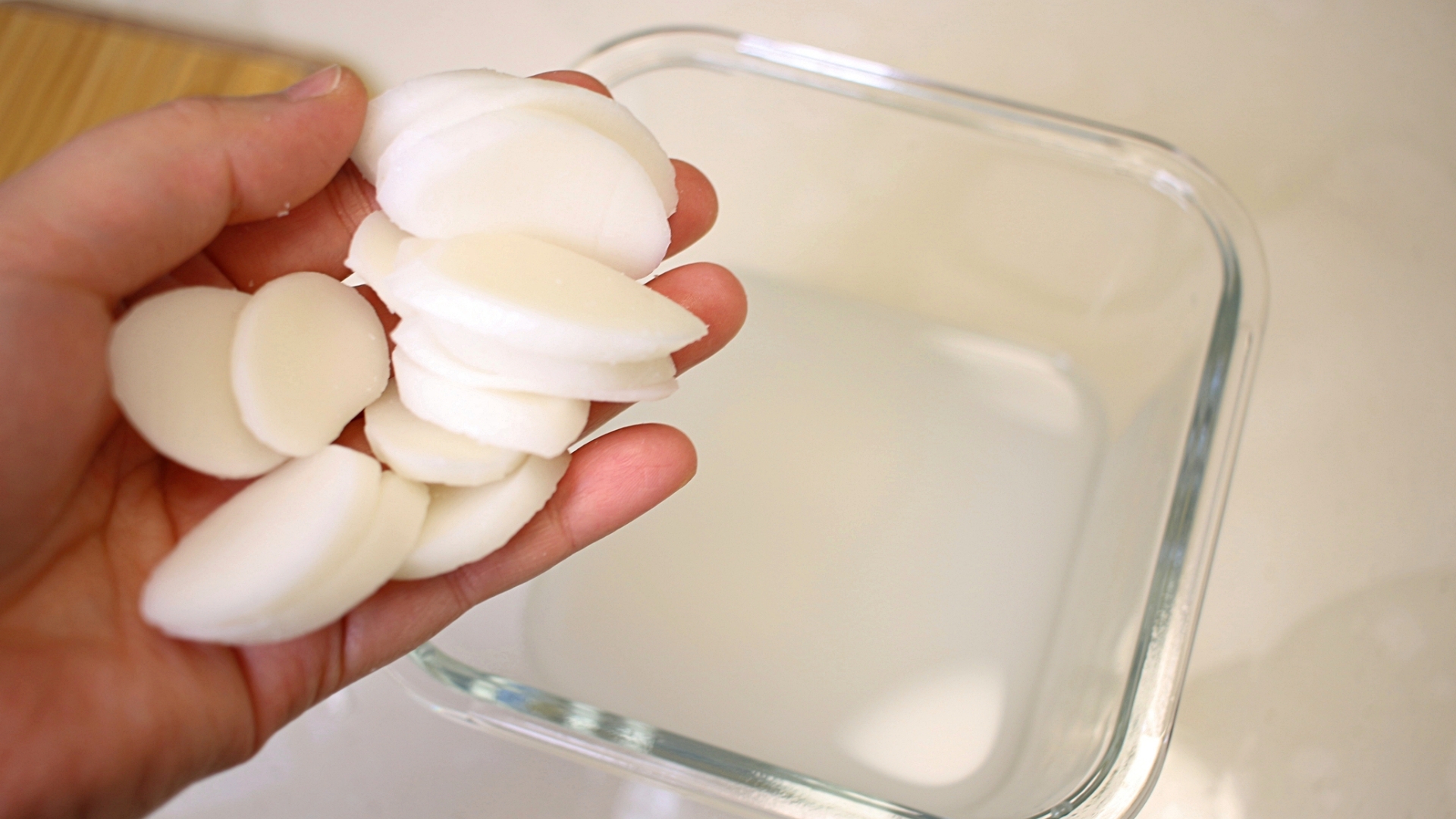 깨끗한 쌀뜨물에 보관한 떡국떡은