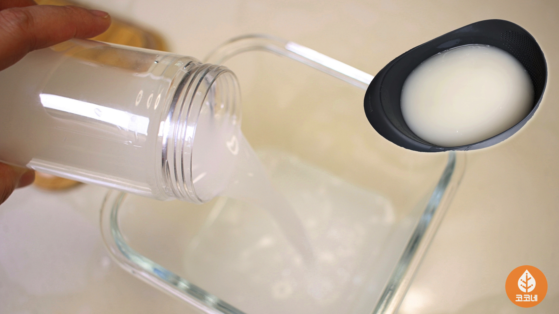 깨끗한 쌀뜨물을 용기에 담고
