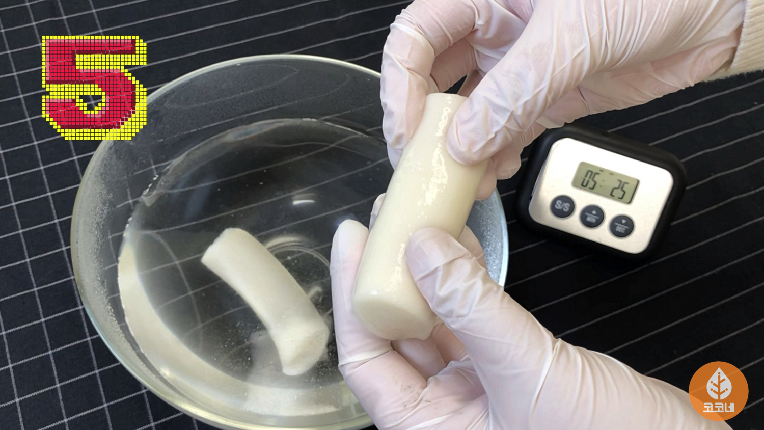 5분 뒤 가래떡 상태를 확인해 봤는데요.