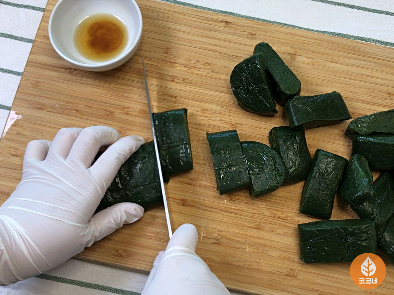 그리고 떡을 썰 때 칼에 참기름을 발라보세요.