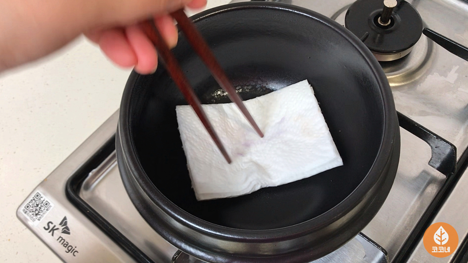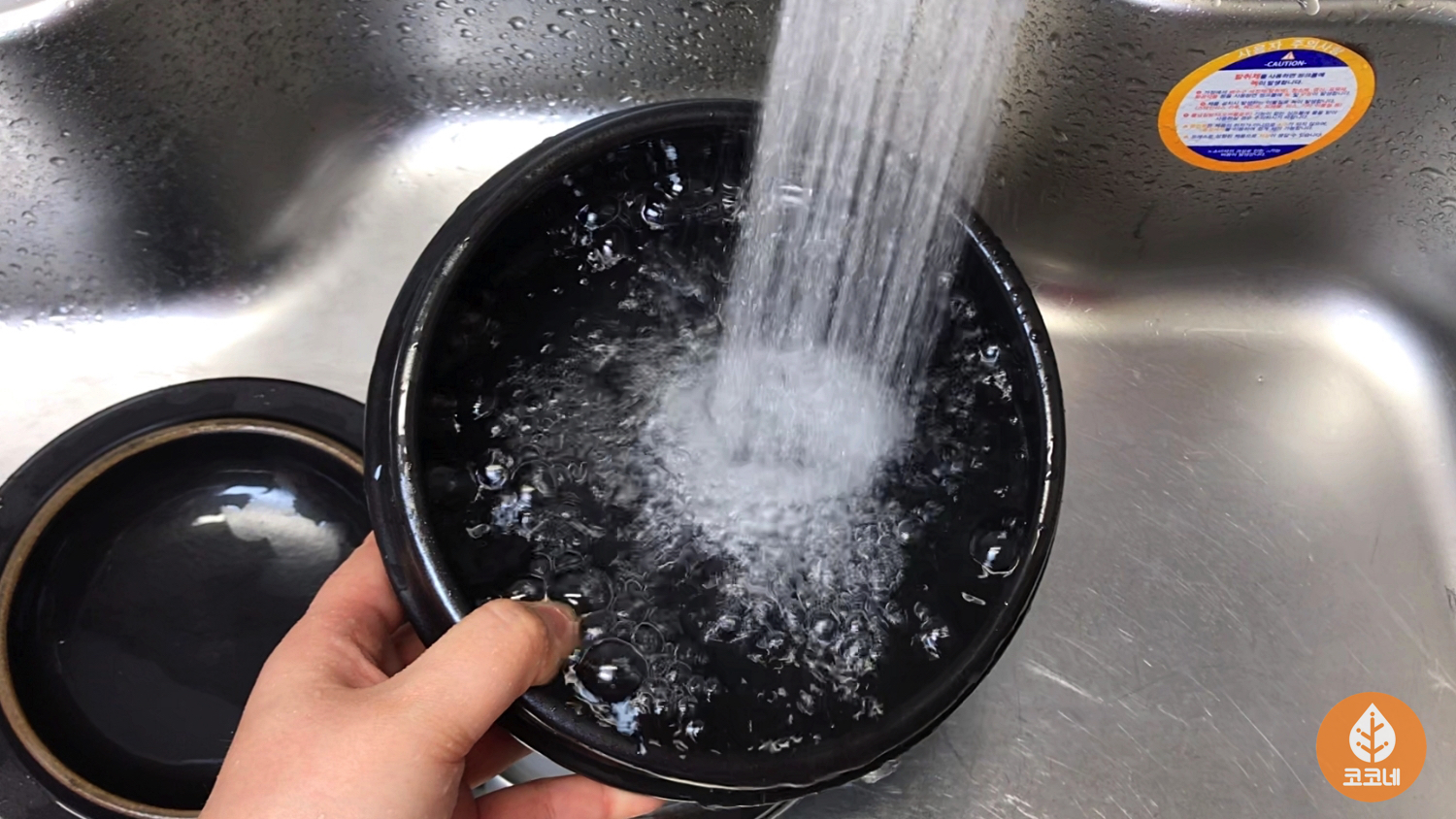 일단 뚝배기를 따뜻한 물로 헹궈주세요.
