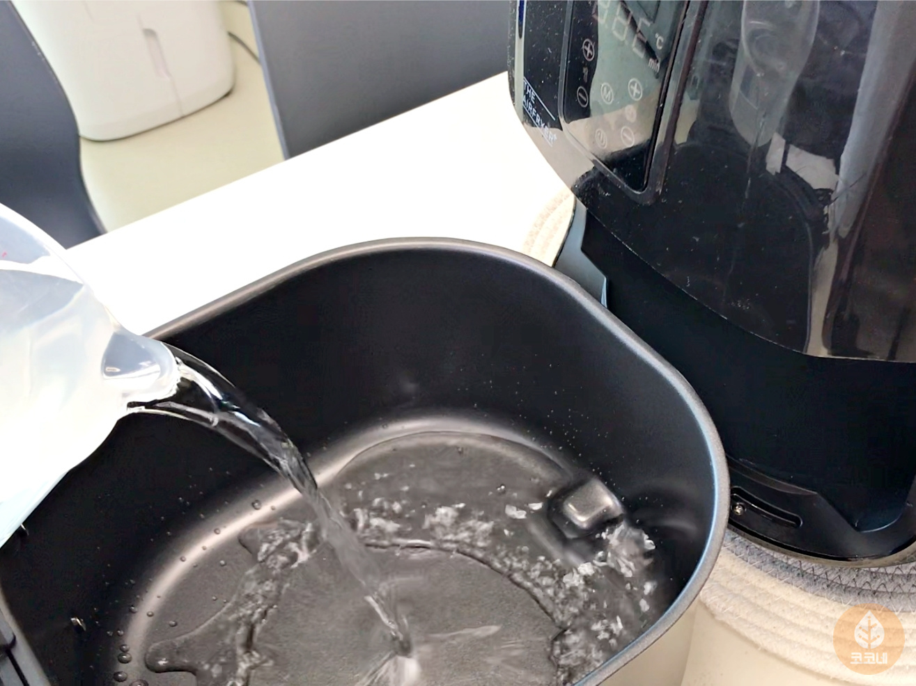 바스켓에 물을 약간 부어주시고요.