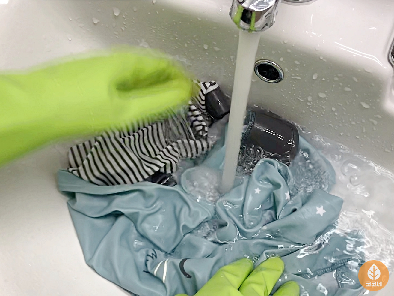 물로 헹굴 때는 세게 문지르거나 비틀지 말고