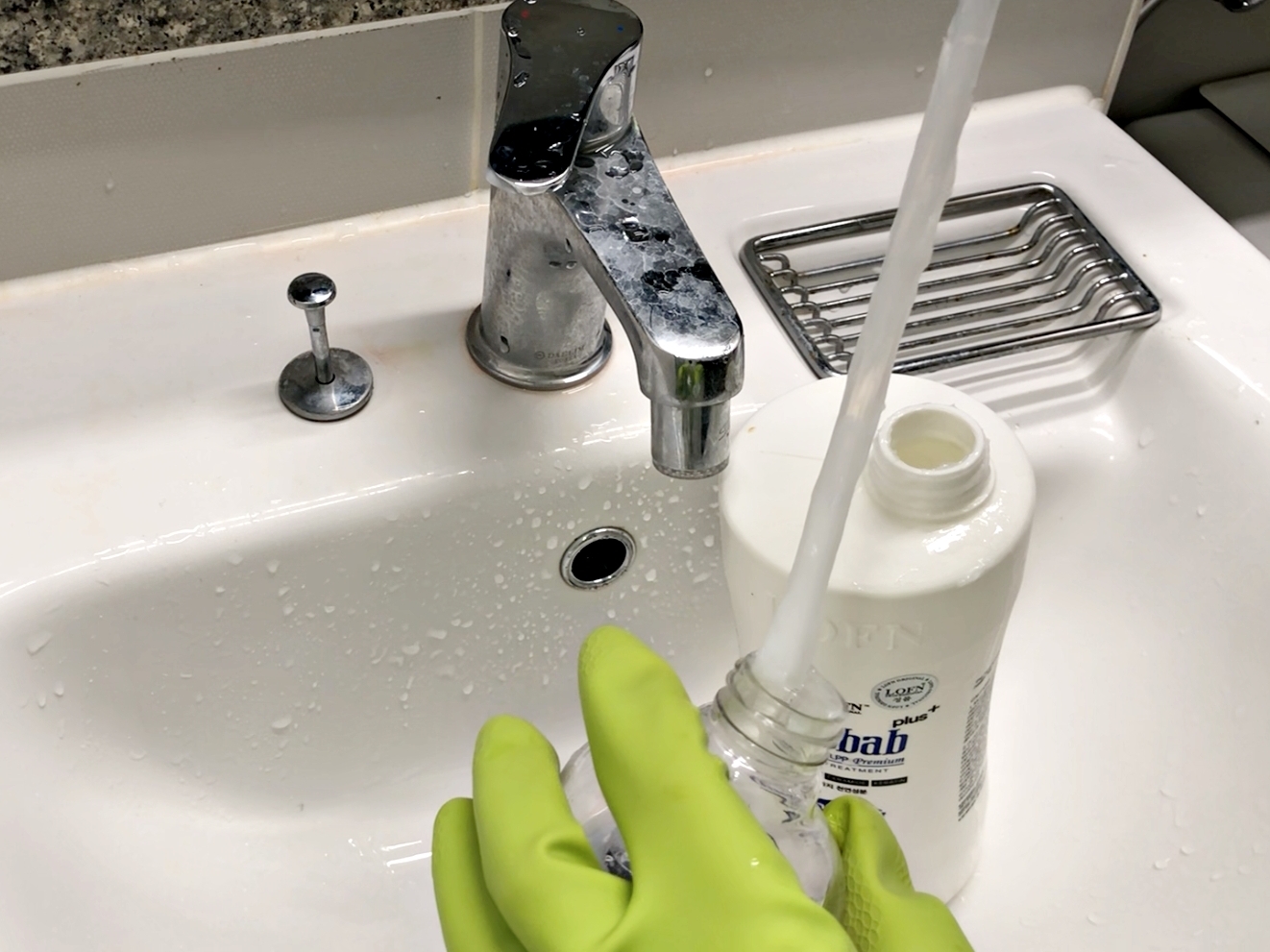 다 쓴 린스통을 물을 부어서 머리를 헹구는건 절대 비추!