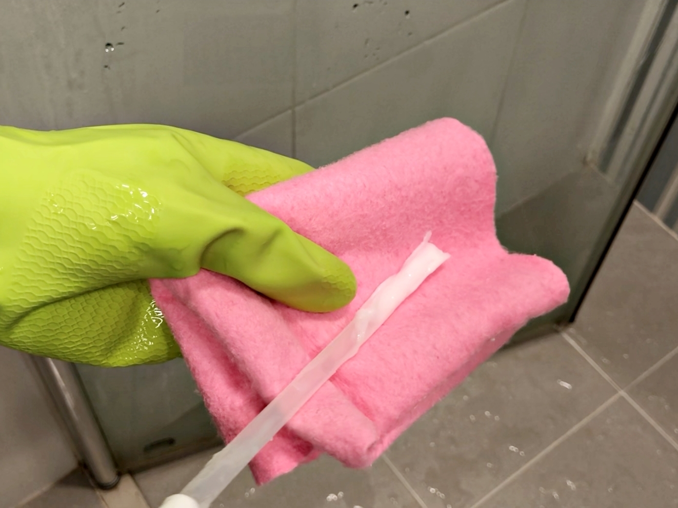 샤워부스를 청소한 뒤 마무리에 이 린스를 묻혀서 닦으면