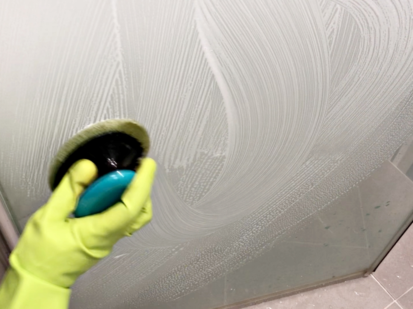 샤워부스를 청소한 뒤 마무리에 이 린스를 묻혀서 닦으면