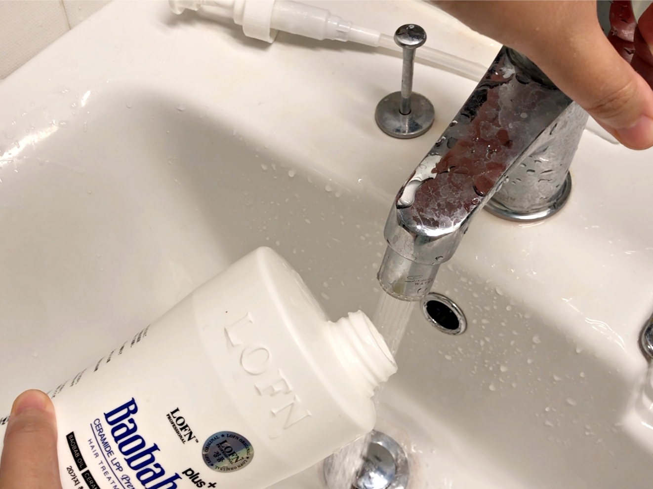 다 쓴 린스통을 물을 부어서 머리를 헹구는건 절대 비추!