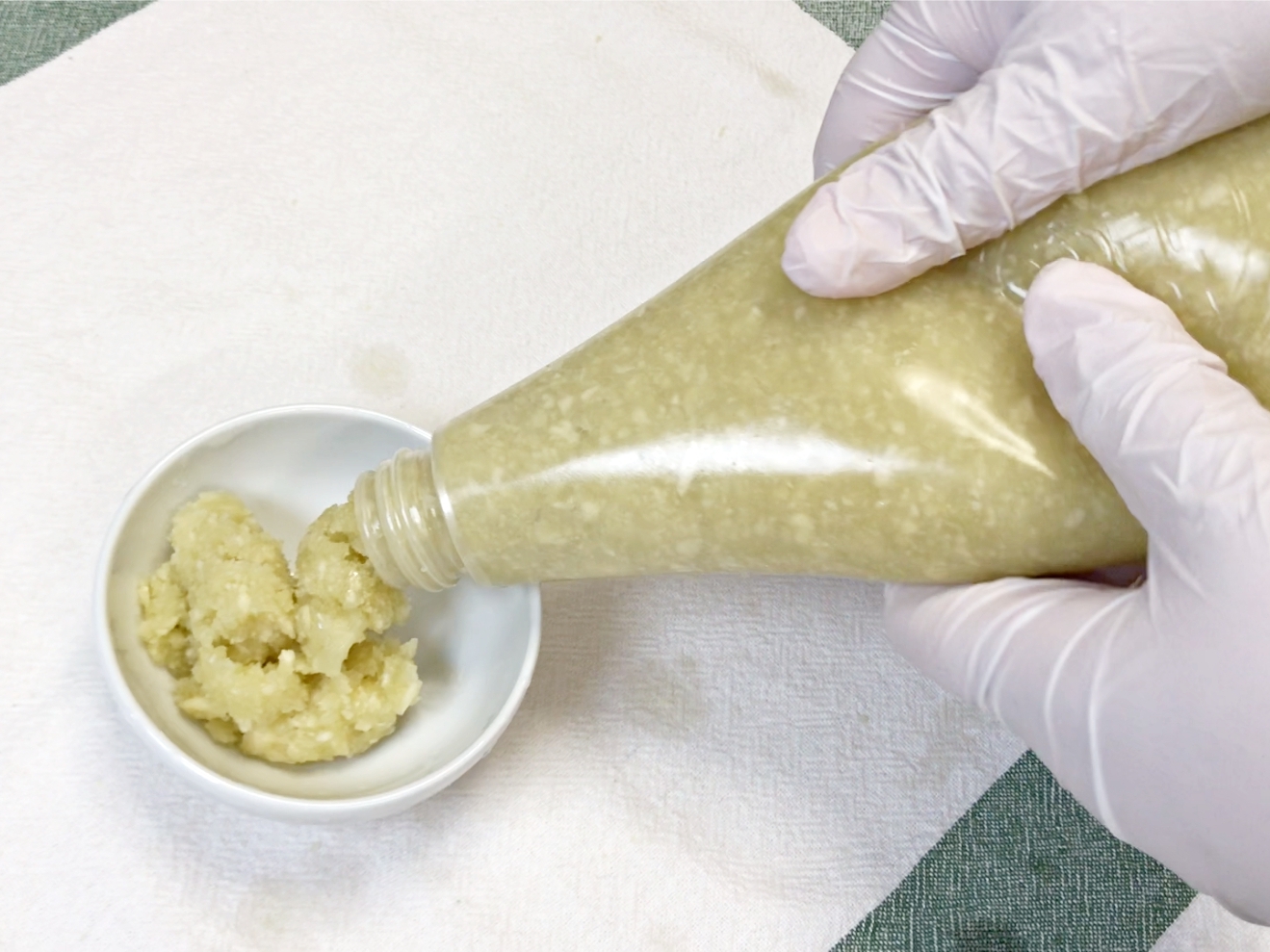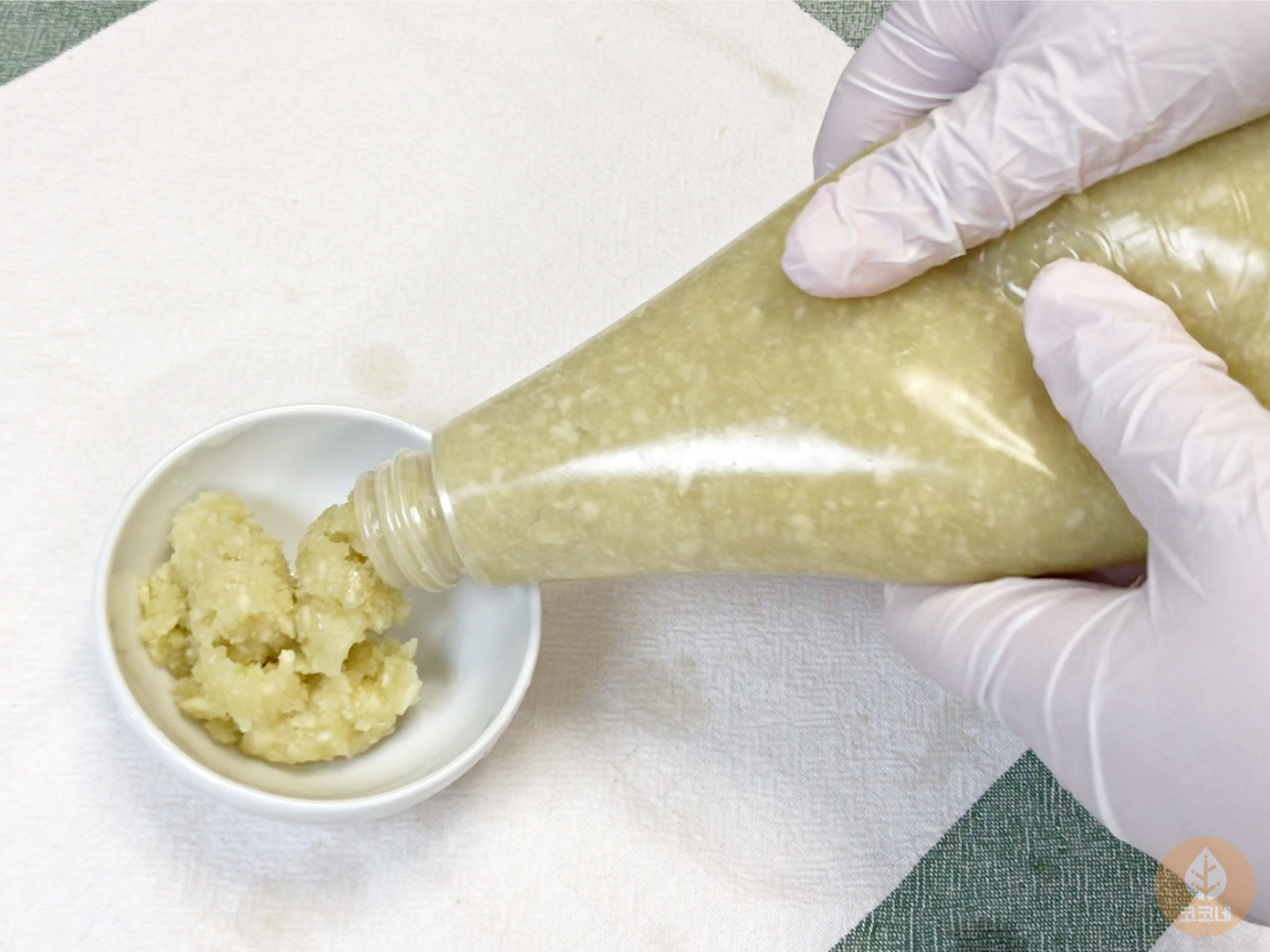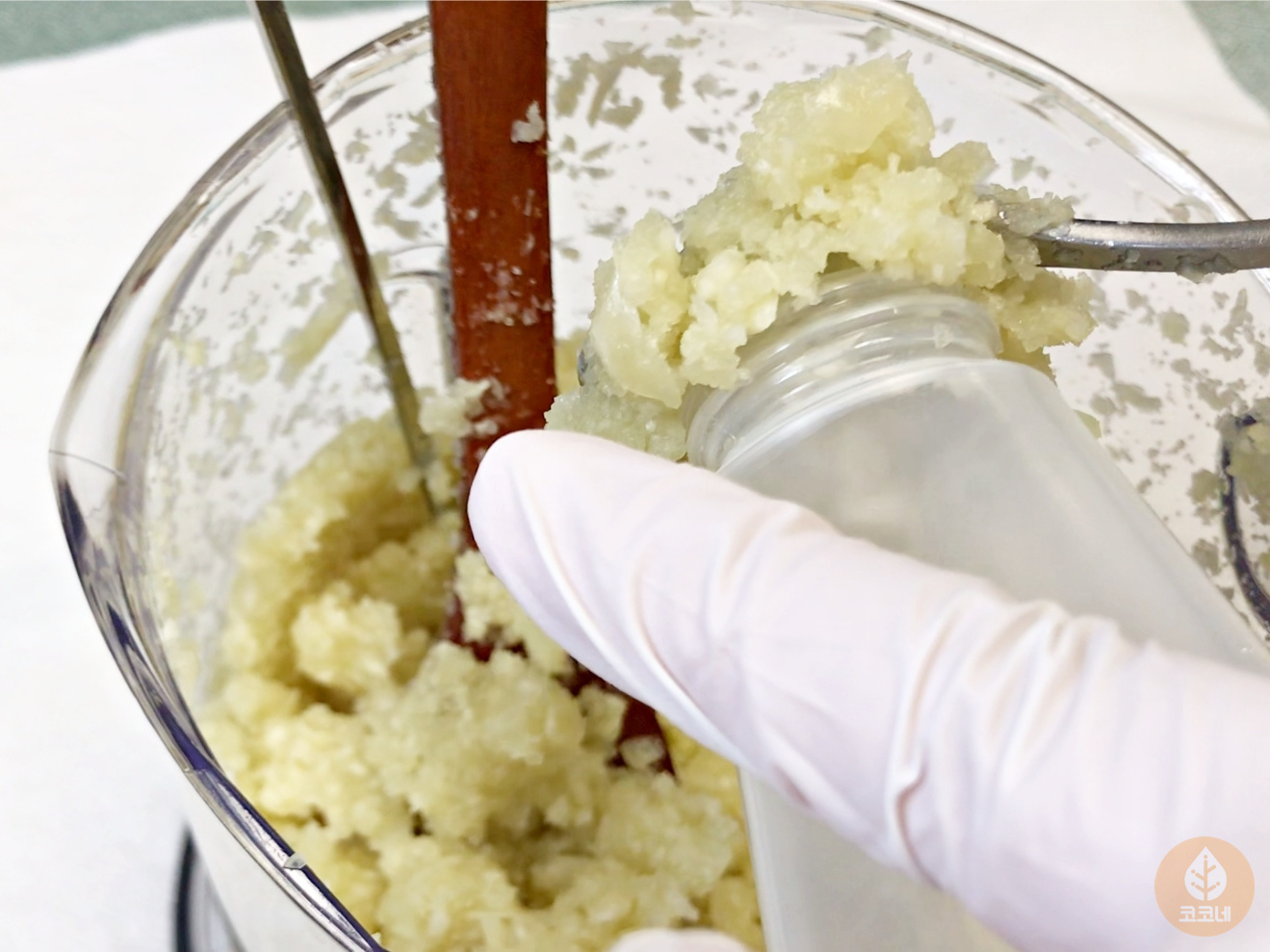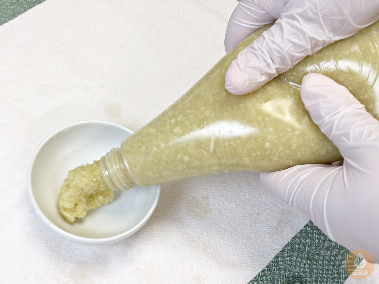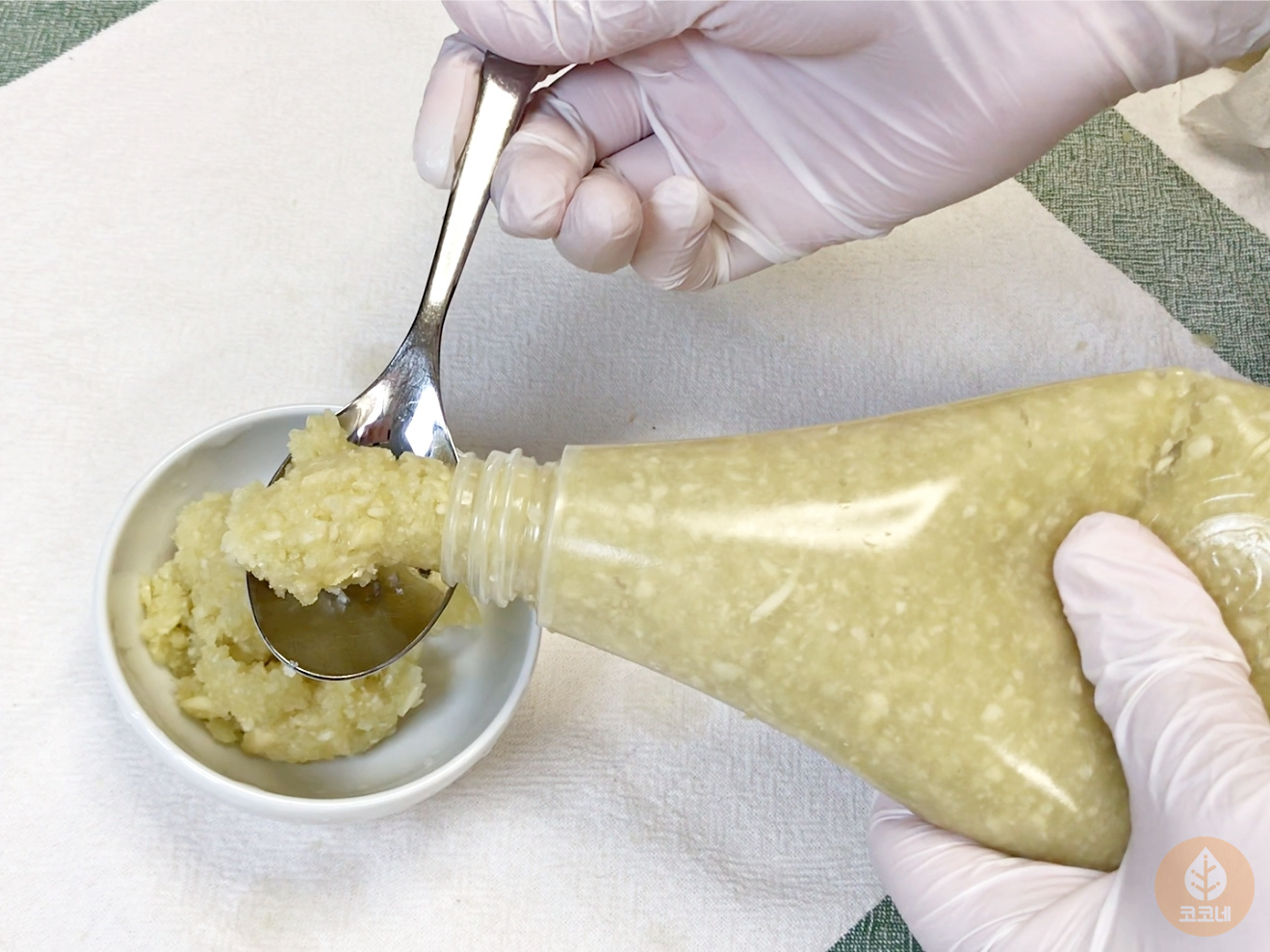 처음 마요네즈통에 다진마늘을 채우는게