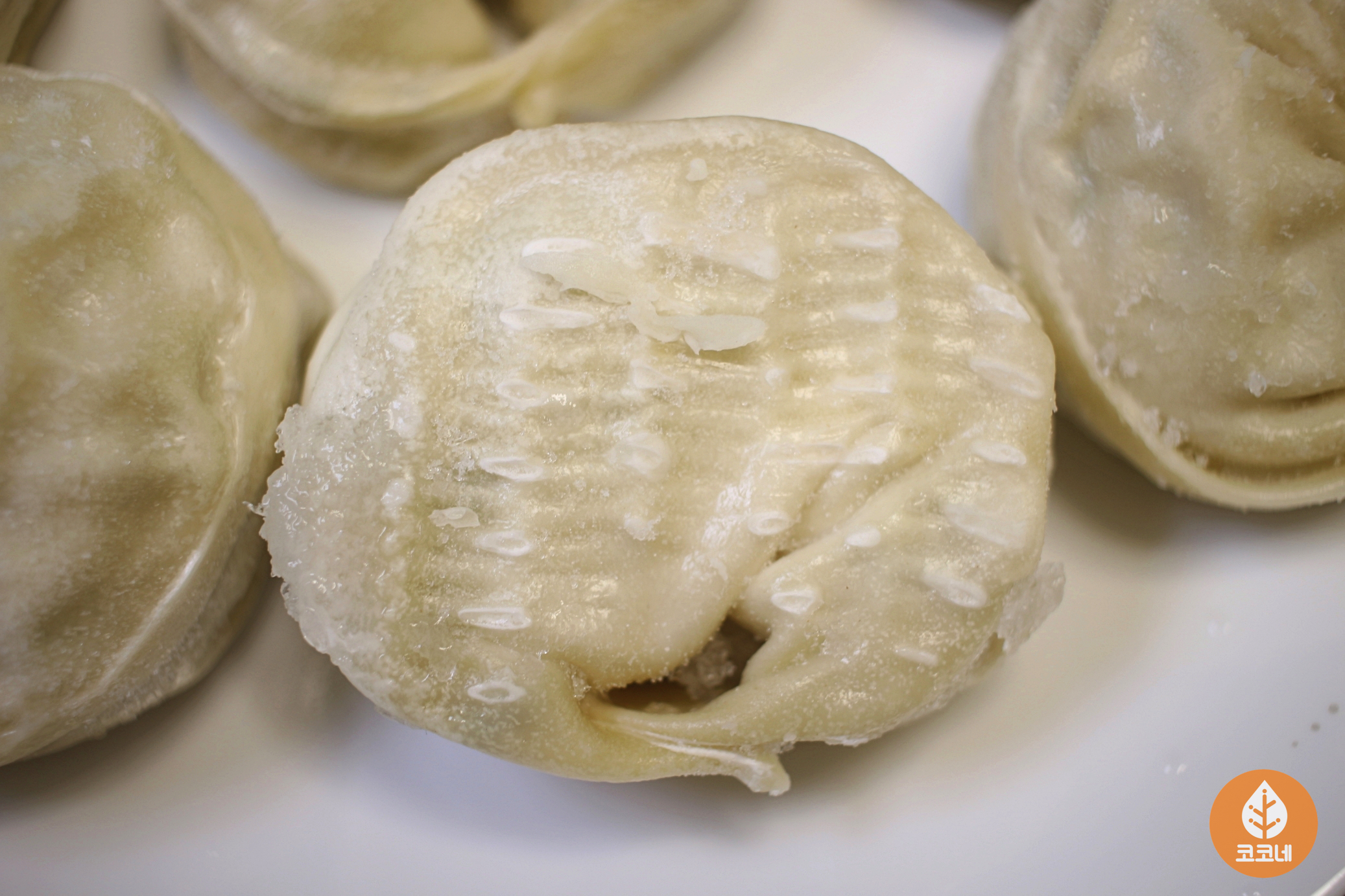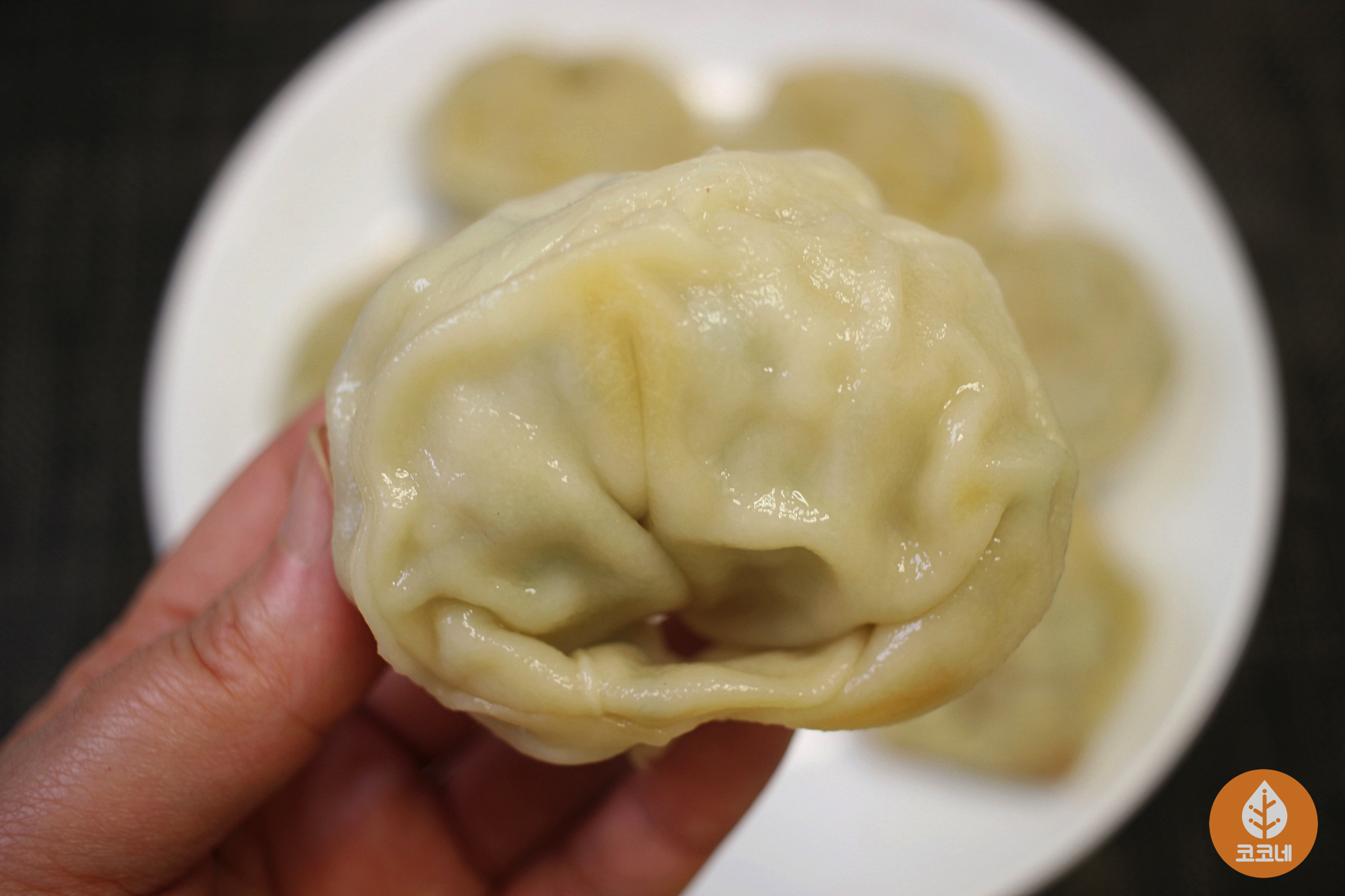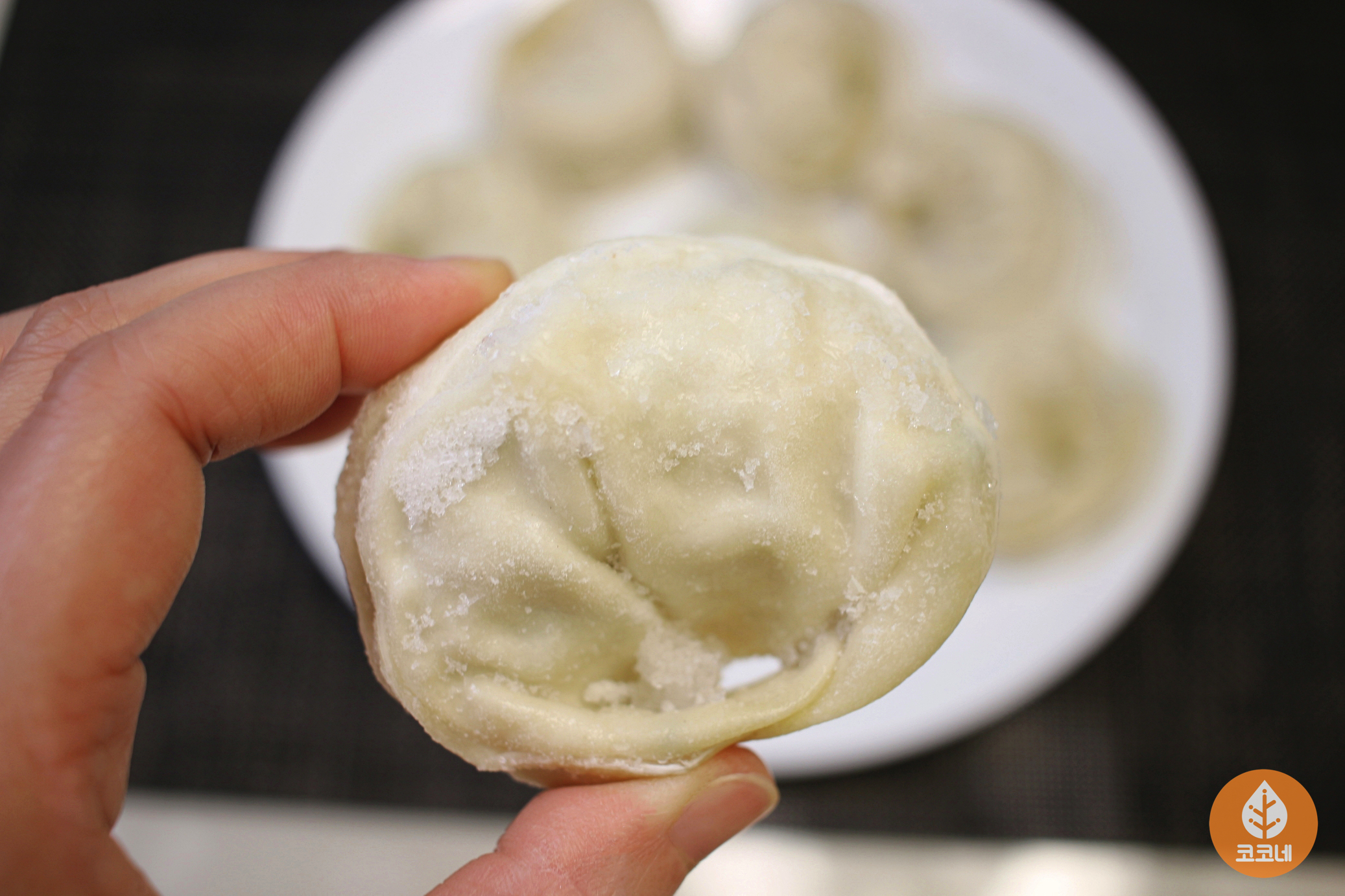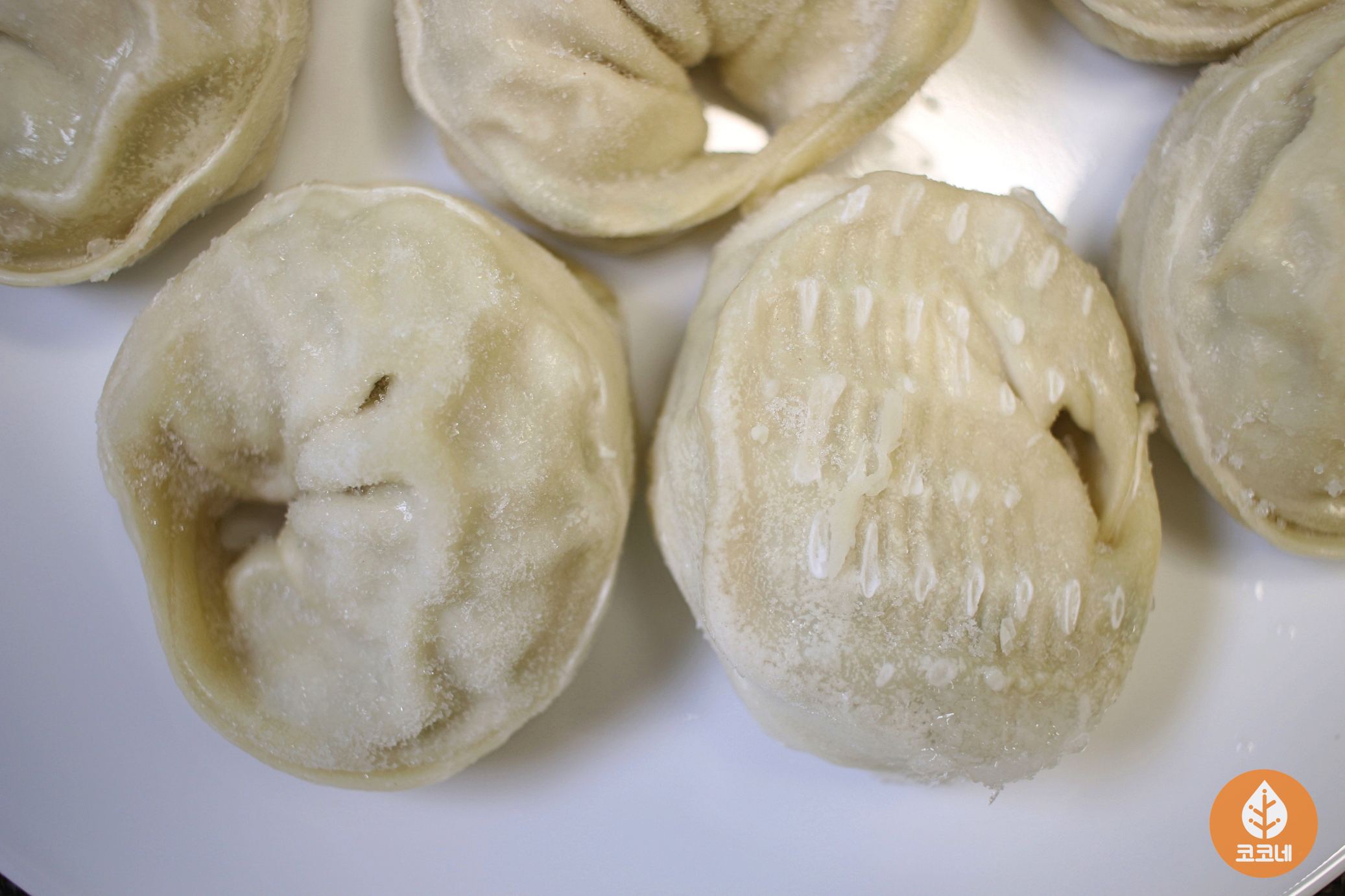 첫 번째는 만두를 뒤집어서 찌는거예요.