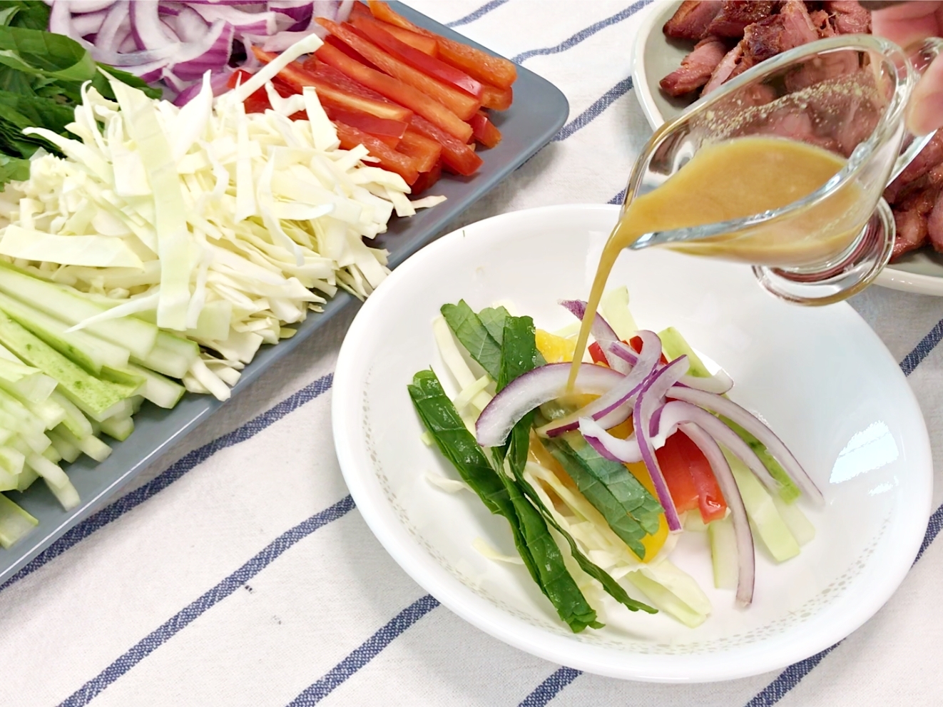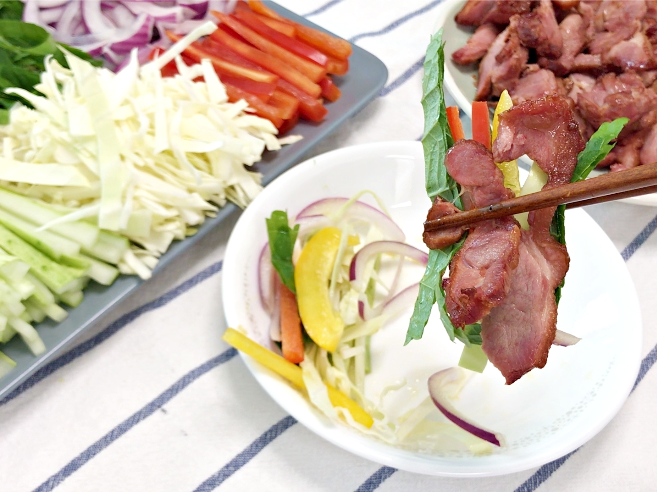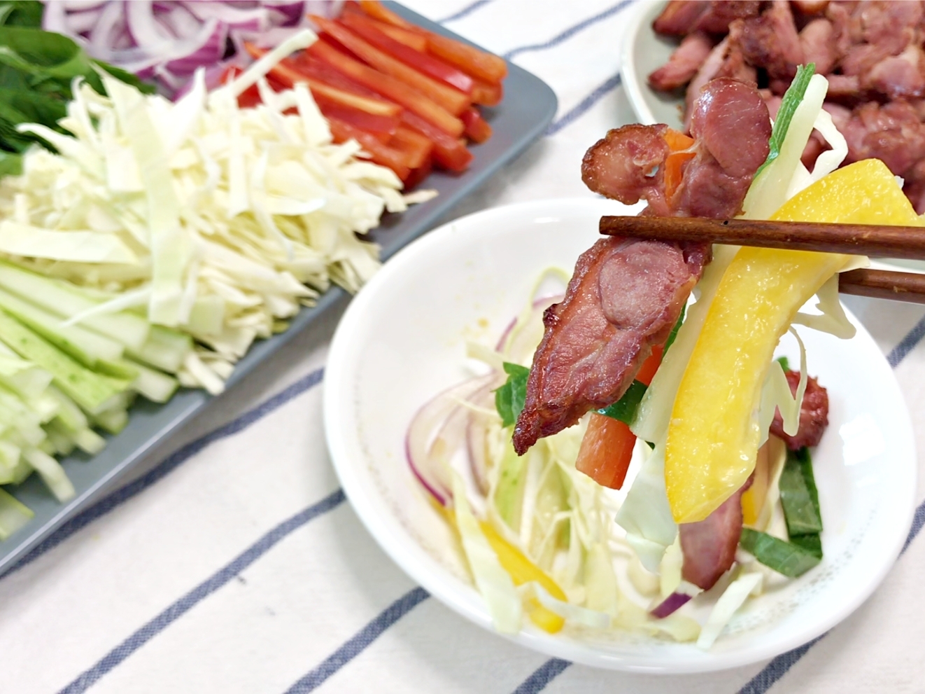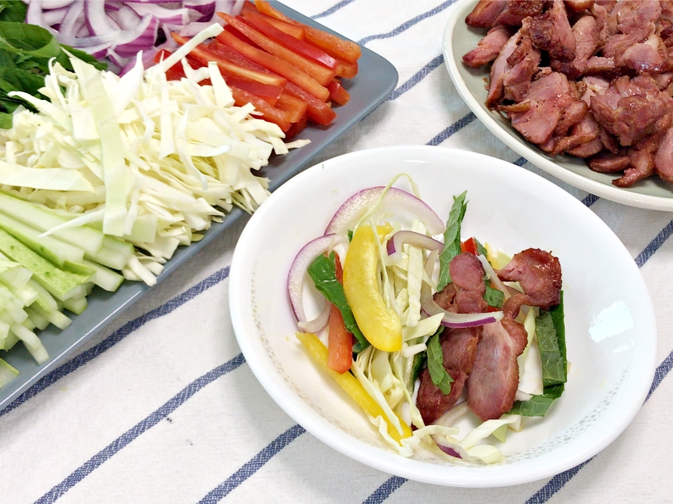 이럴땐 아삭한 채소와 담백한 훈제오리가 딱이에요.