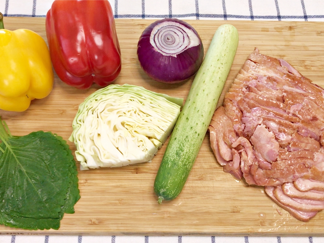 파프리카, 양파, 오이, 양배추, 깻잎.