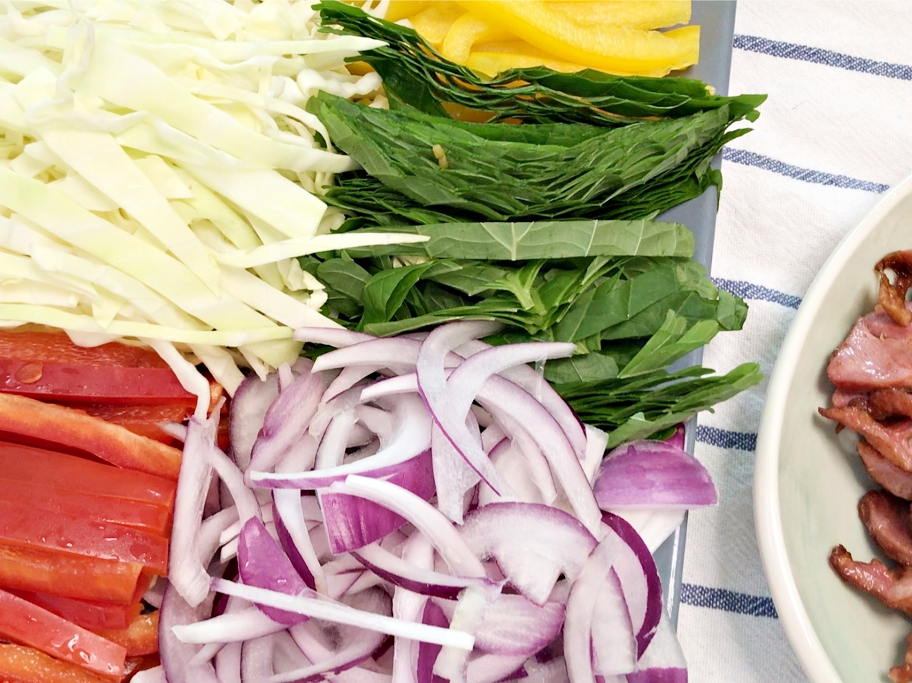야채는 색감 살릴 수 있게 골고루 준비해 주시고요.