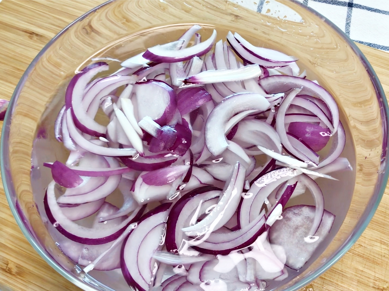 양파는 레몬즙 넣은 찬물에 30분정도 담가 매운맛을 제거했어요.