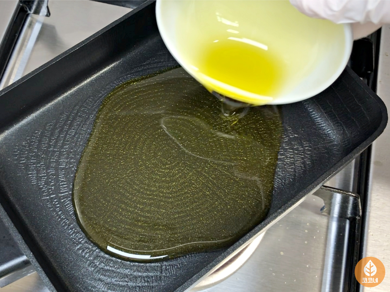 후라이팬에 올리브오일을 넉넉하게 붓고