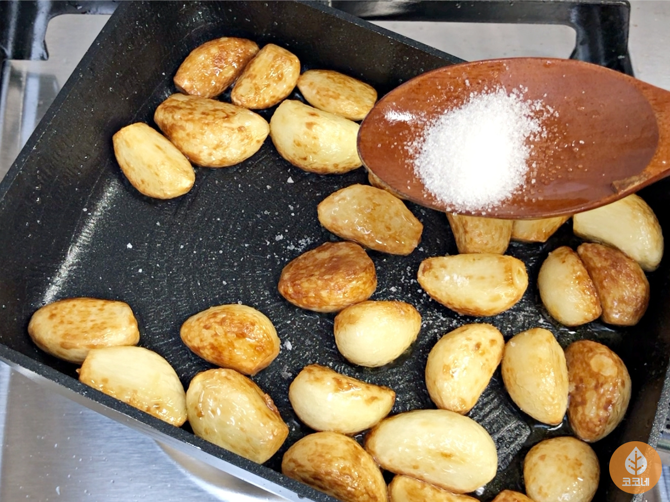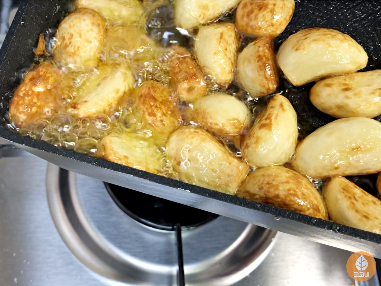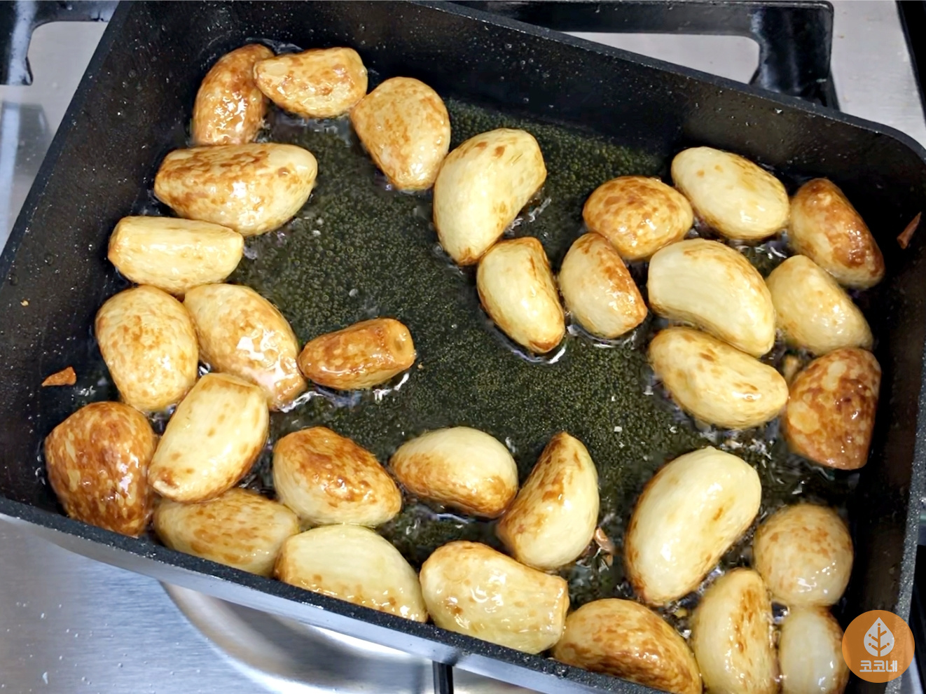 마늘색깔이 먹음직스럽게 갈색으로 변하면