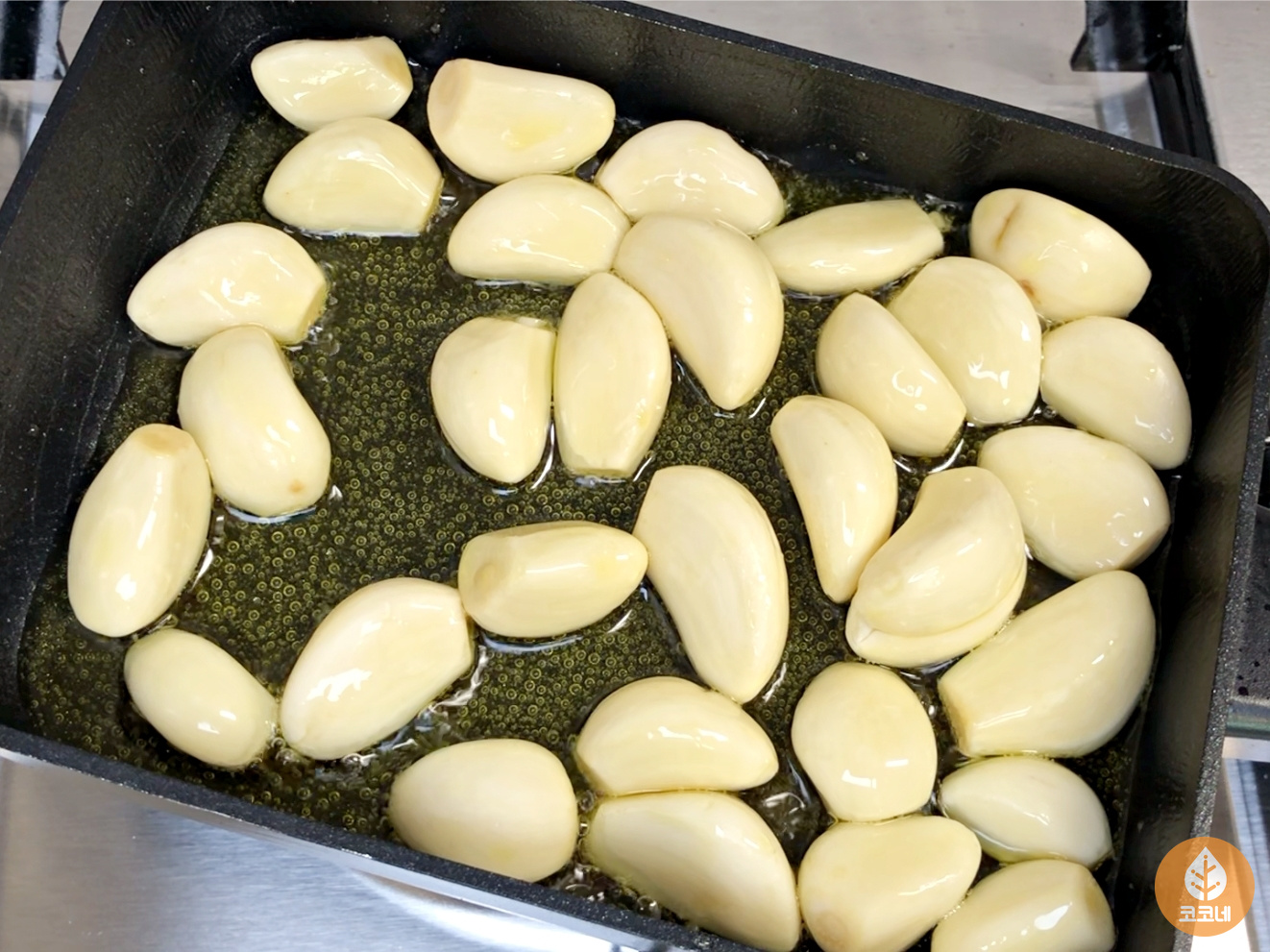 기름을 넉넉하게 부어야 마늘이 타지 않아요~