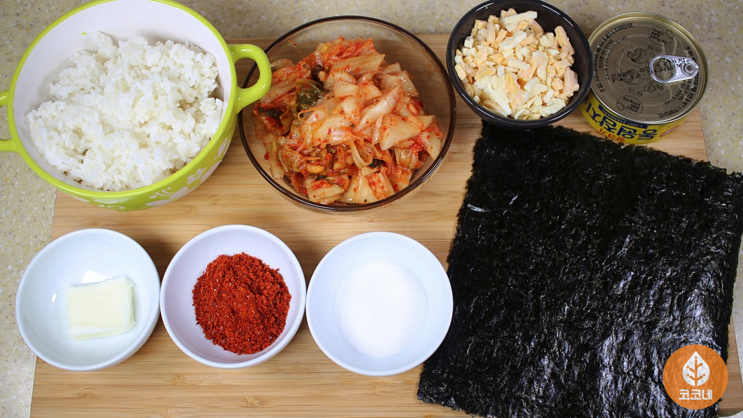 ★재료- 흰밥, 김치, 피자치즈, 참치,