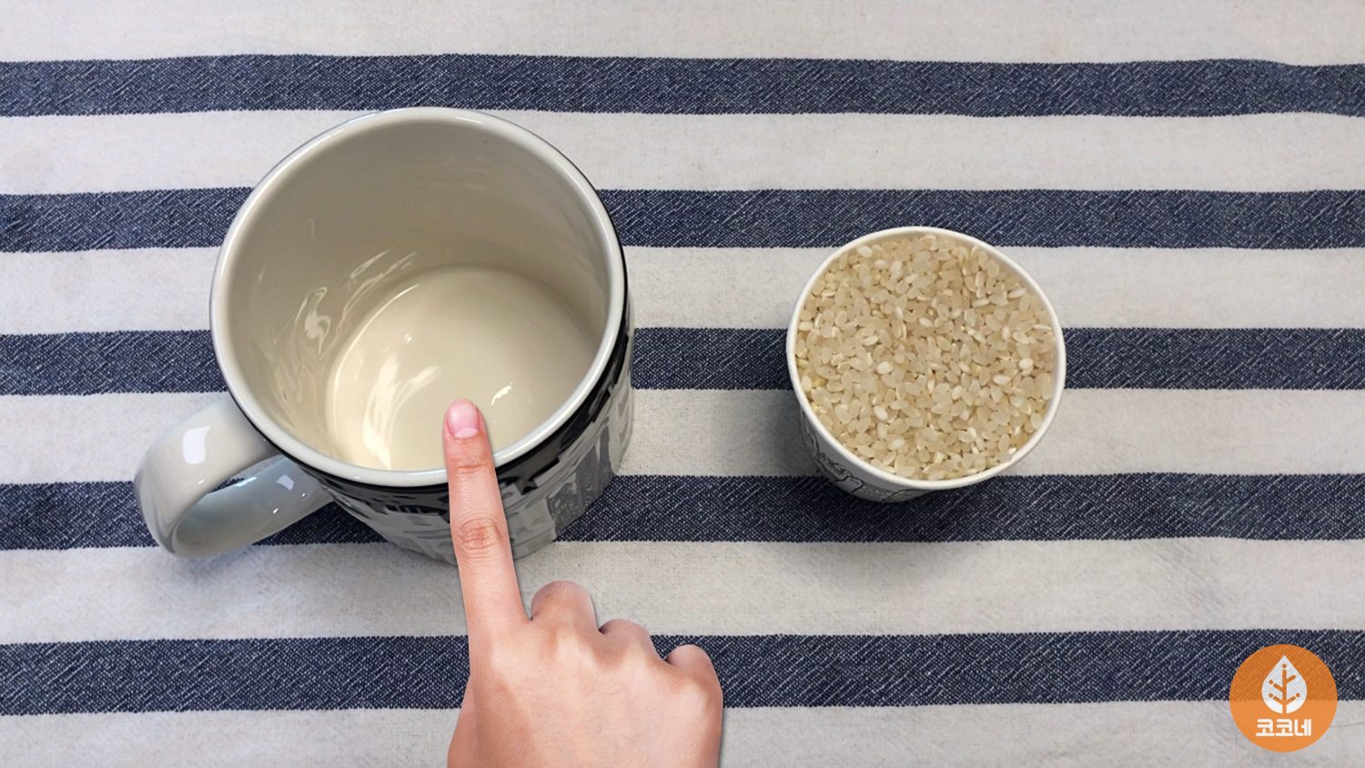불리지 않은 쌀은 1.5컵 부어주시면 돼요.