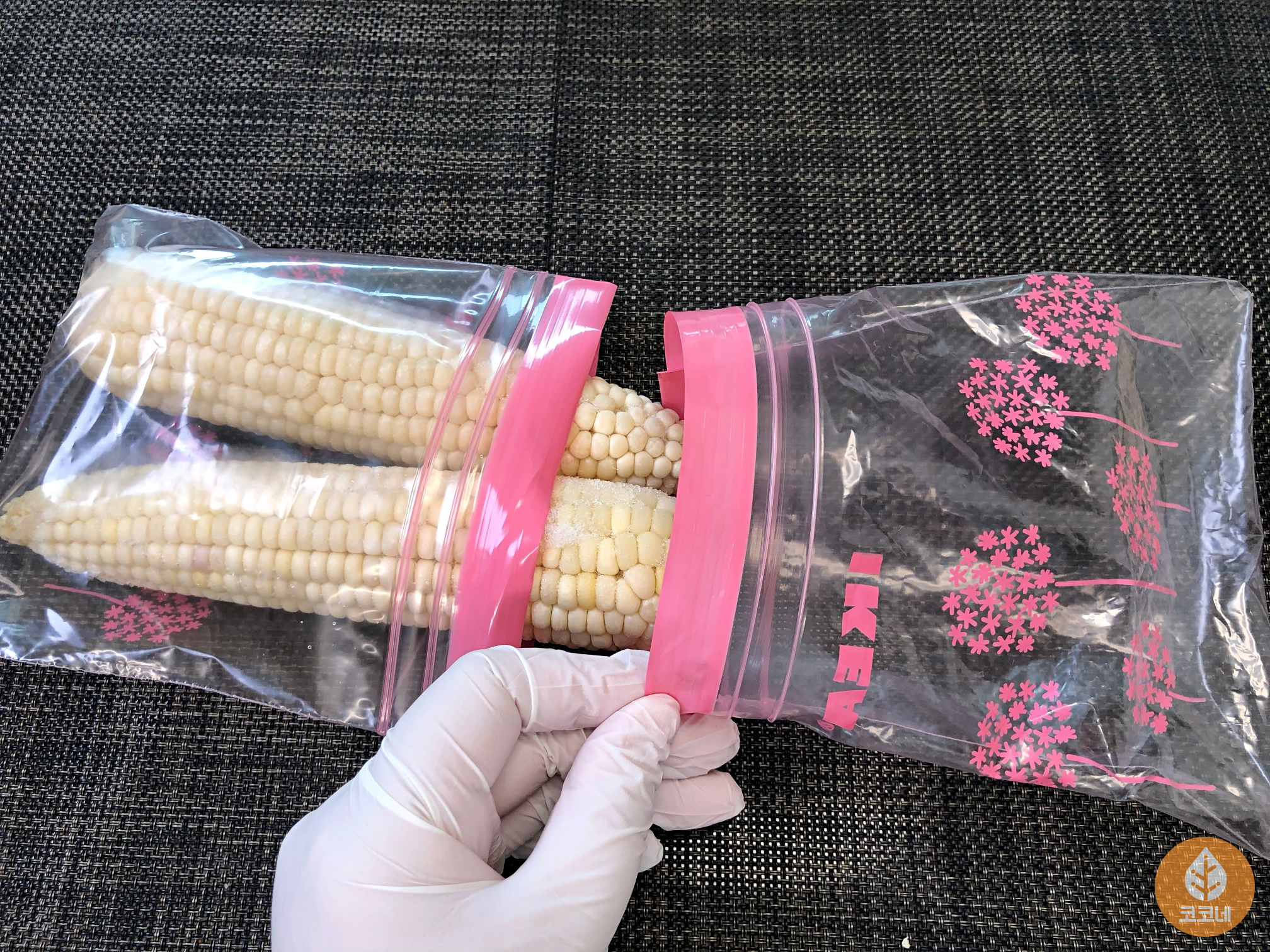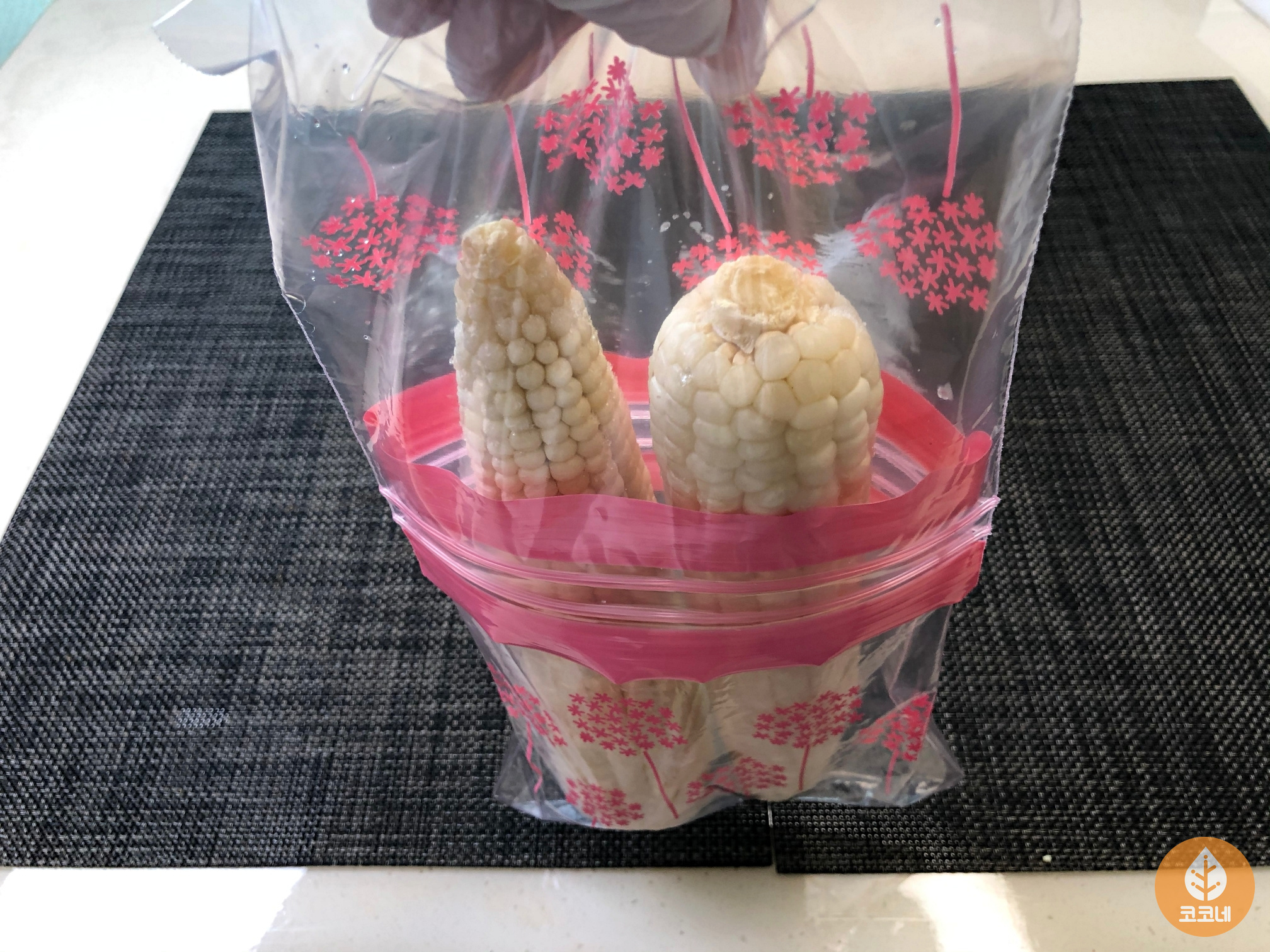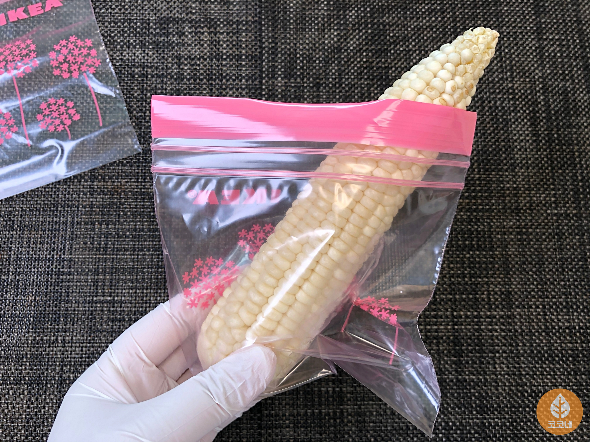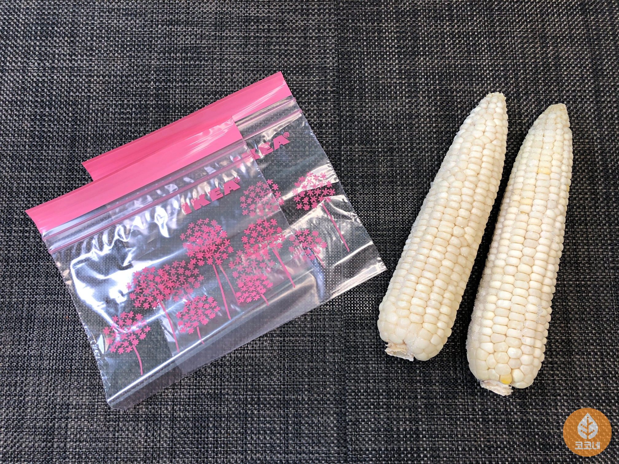 이렇게 옥수수보다 지퍼백이 더 작아서