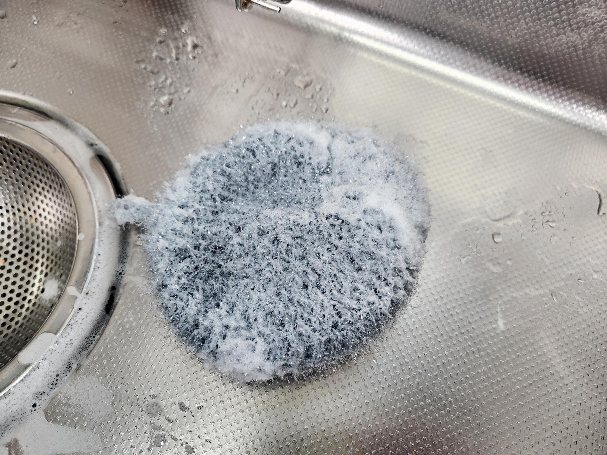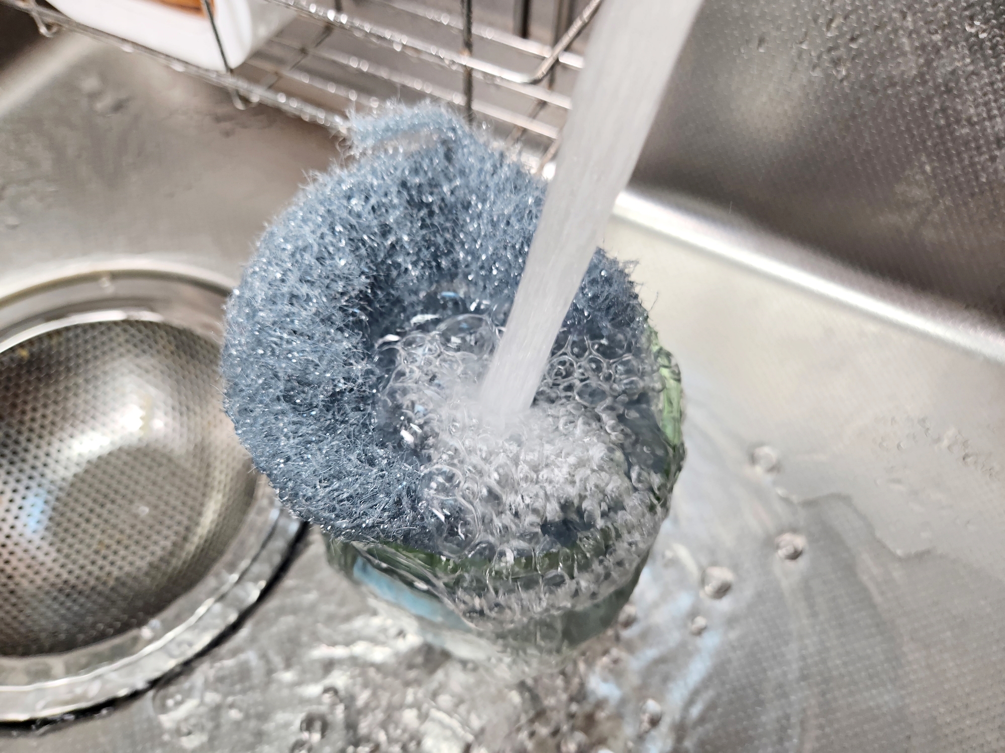 수세미를 충분히 문질러 씻어주세요.