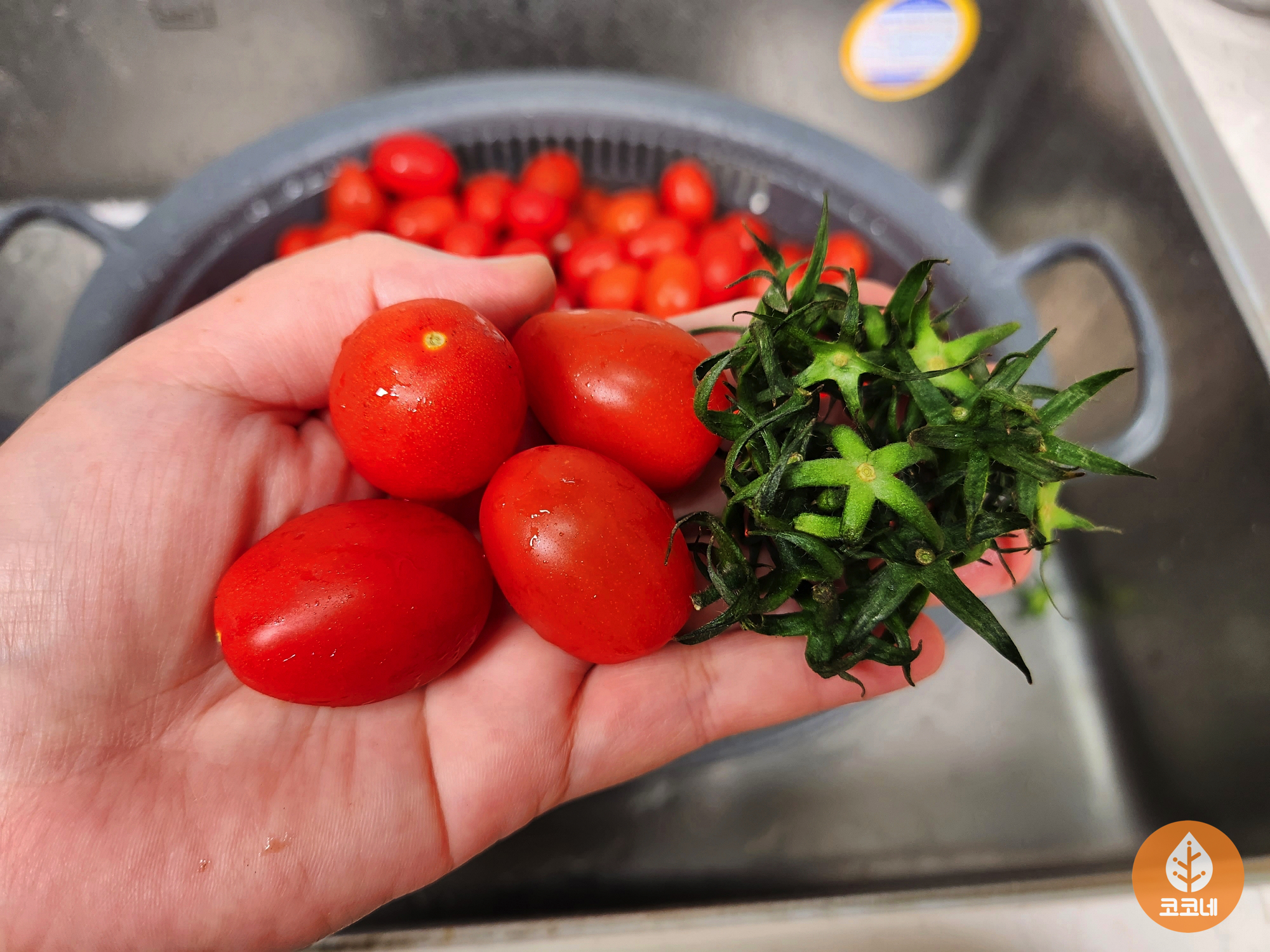 그리고 방울토마토의 꼭지를 몽땅 떼주세요!