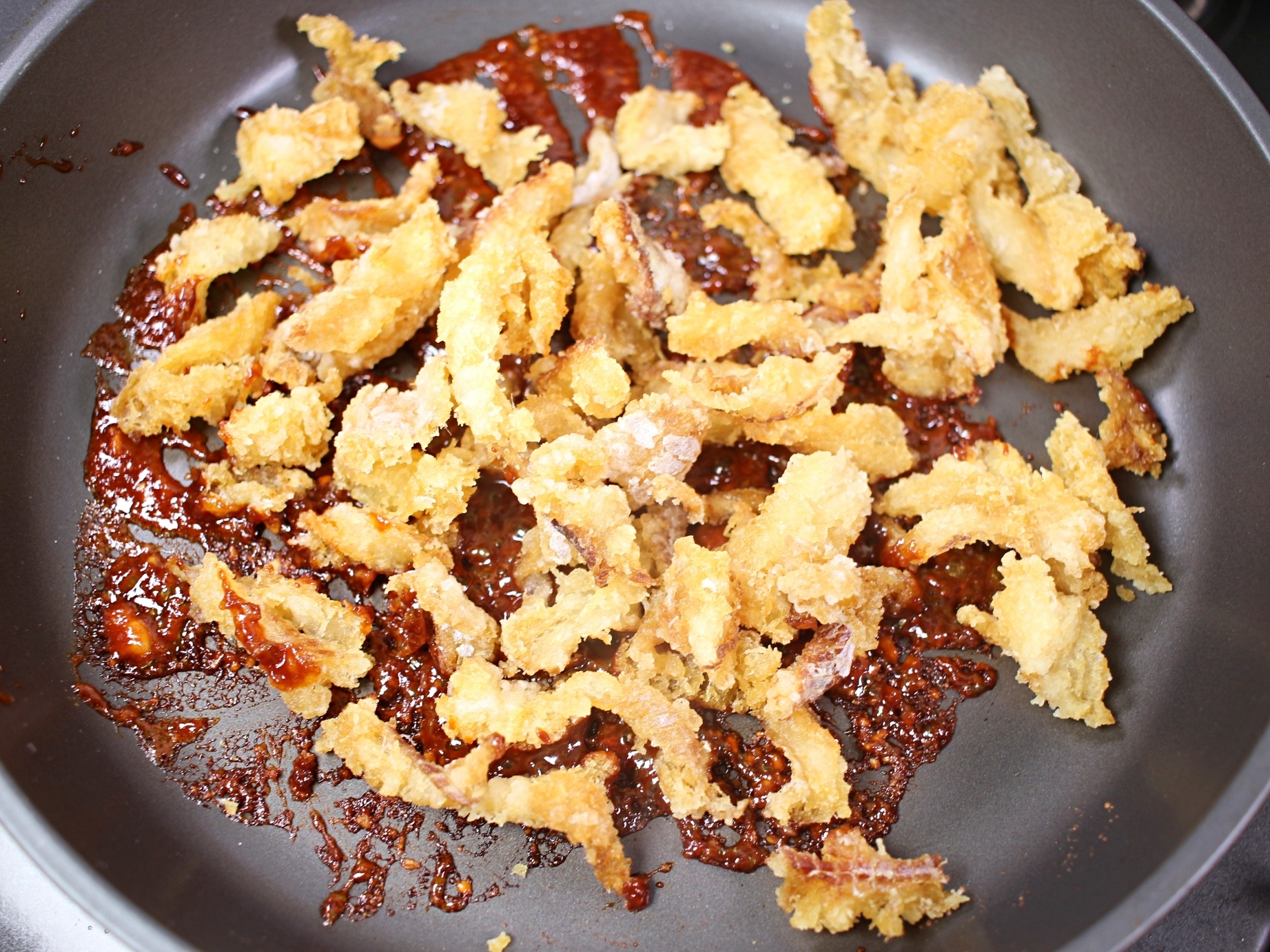 매콤달콤하면서도 감칠맛 도는 강정 양념이 완성돼요.