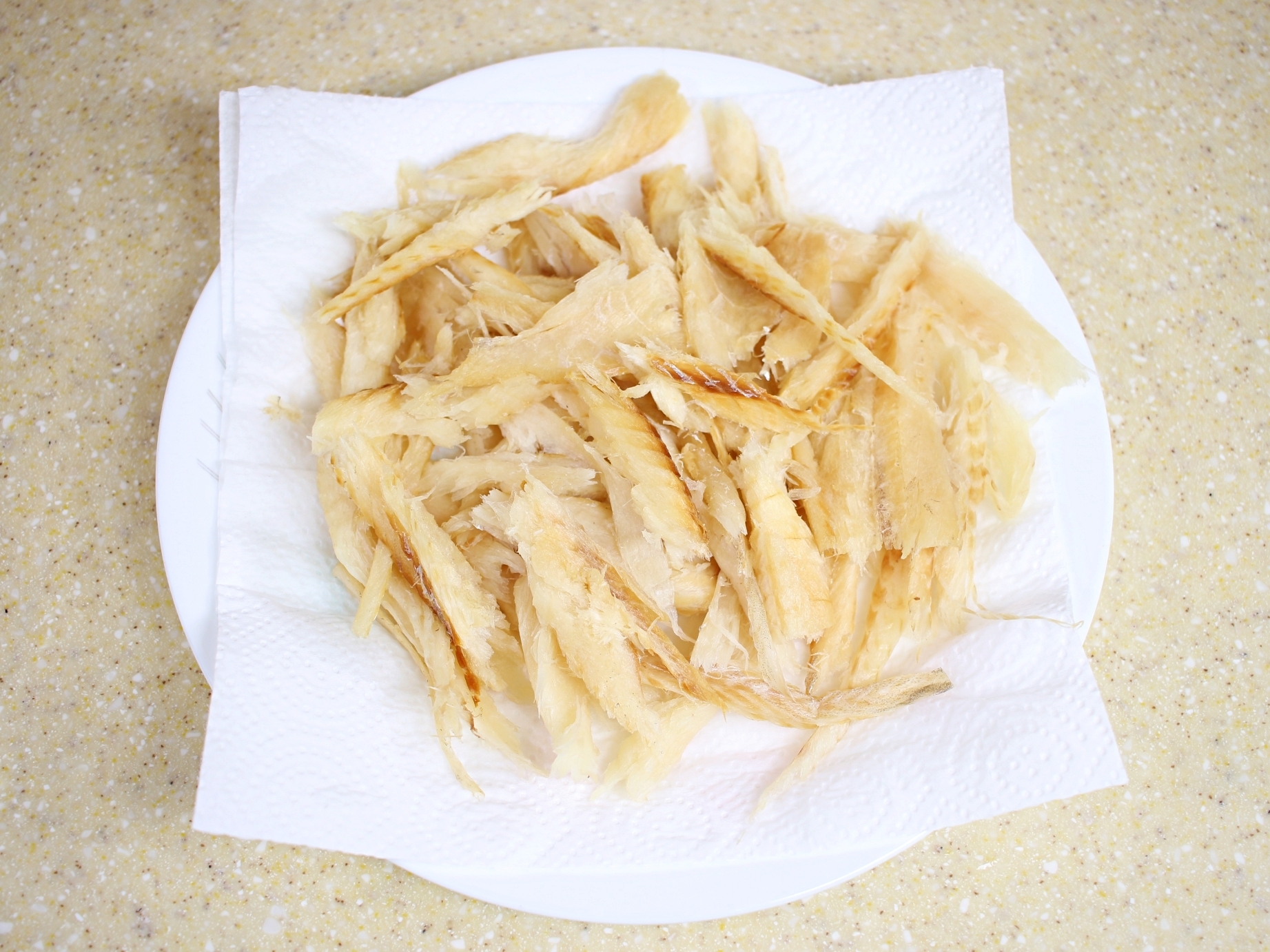 북어포는 한번만 튀겨도 과자처럼 바삭한 식감이 나요.