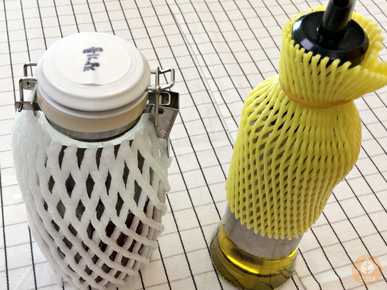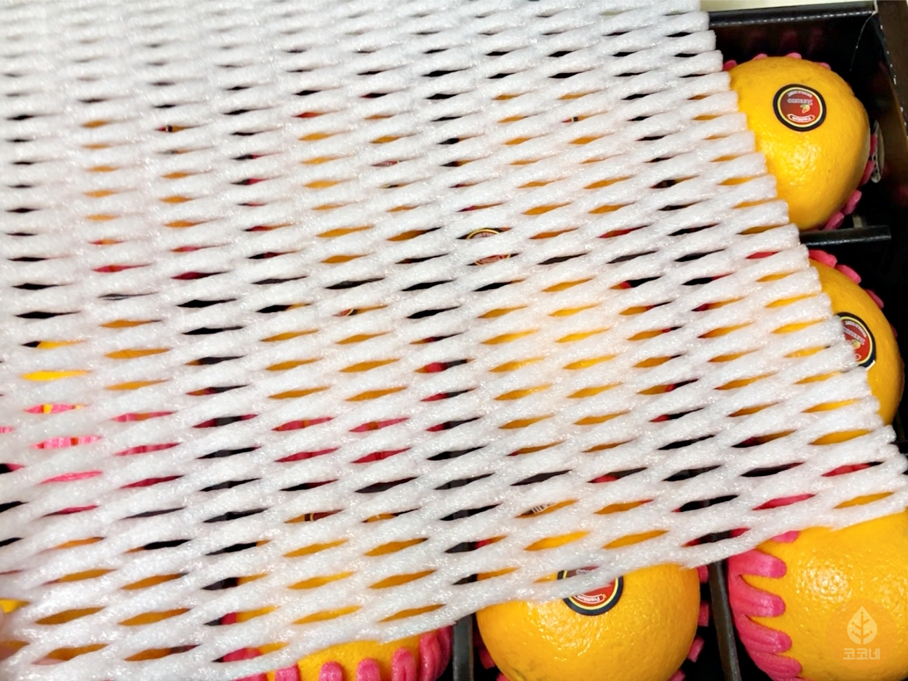 과일보호망을 사이에 끼우면 깨질 염려가 없어요.