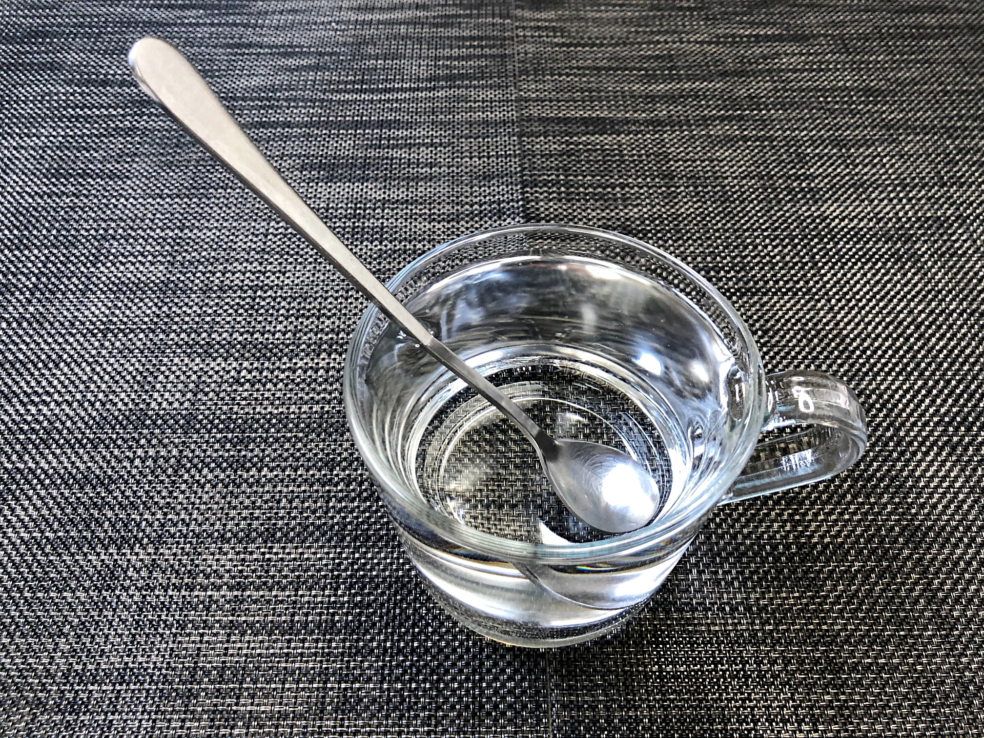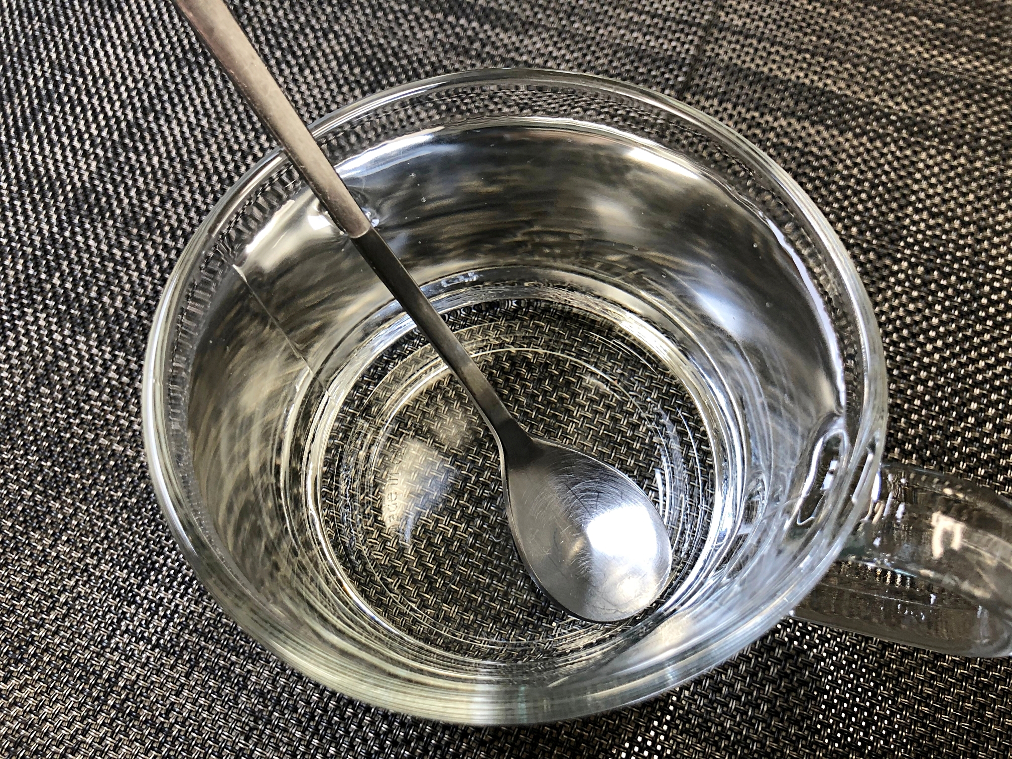 스테인리스 숟가락을 물에 10초 정도 담가 데워주세요.
