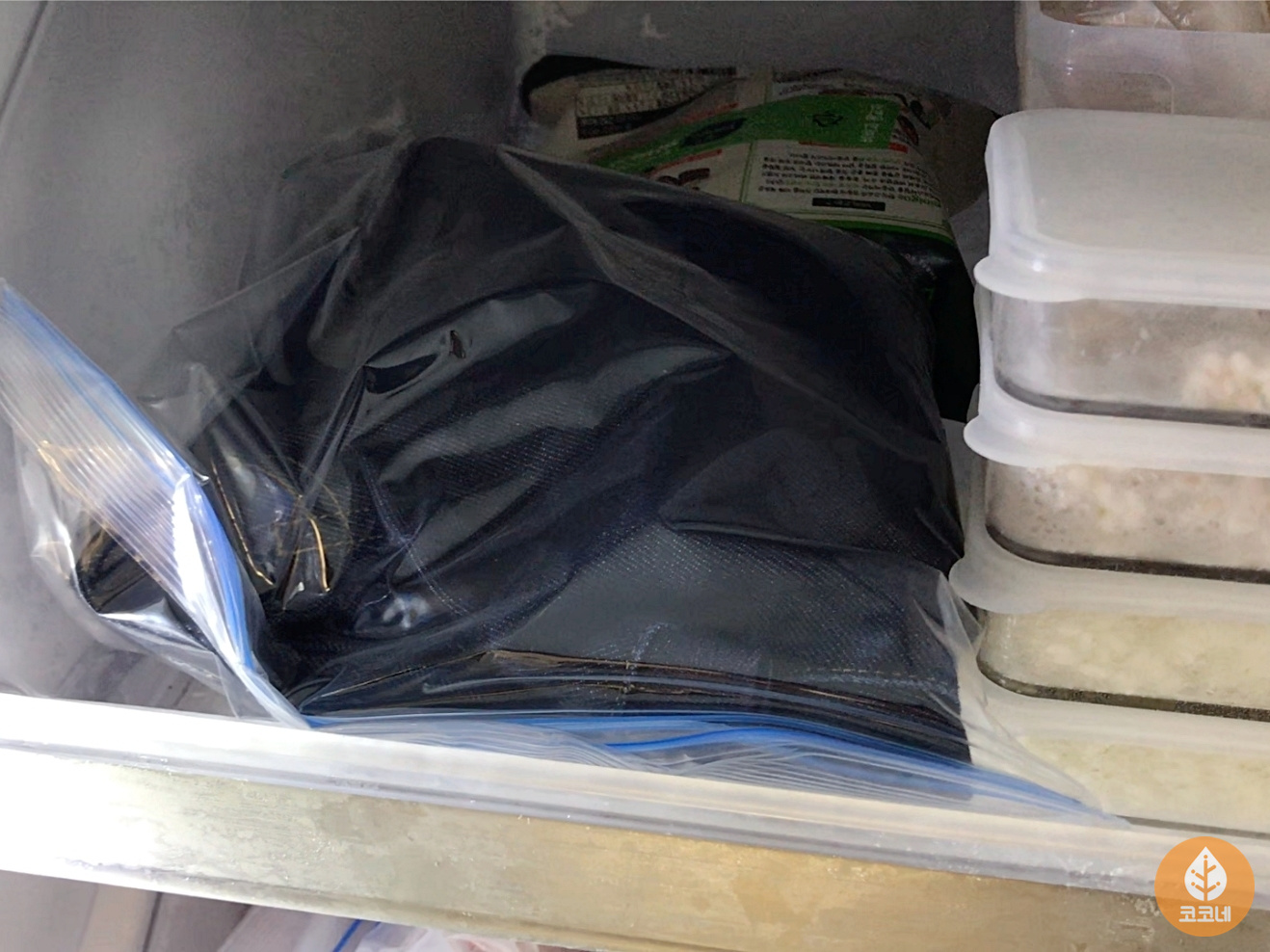 냉동실에 넣어서 냄새를 뺄 수 있어요.