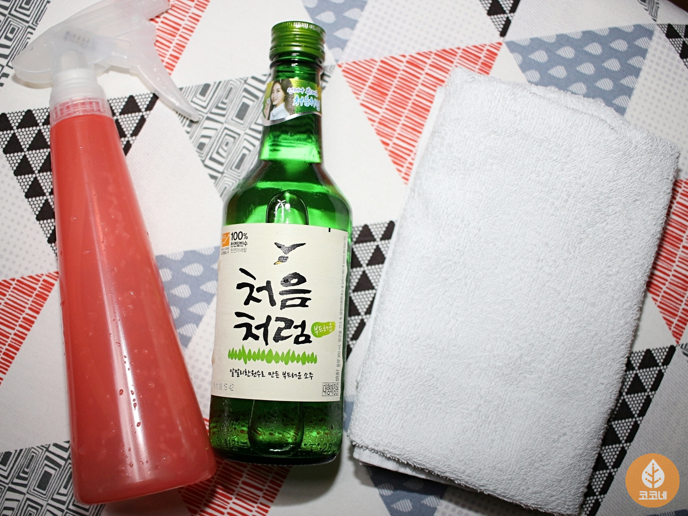 소주, 수건, 분무기를 이용해서 다림질을 해볼게요.