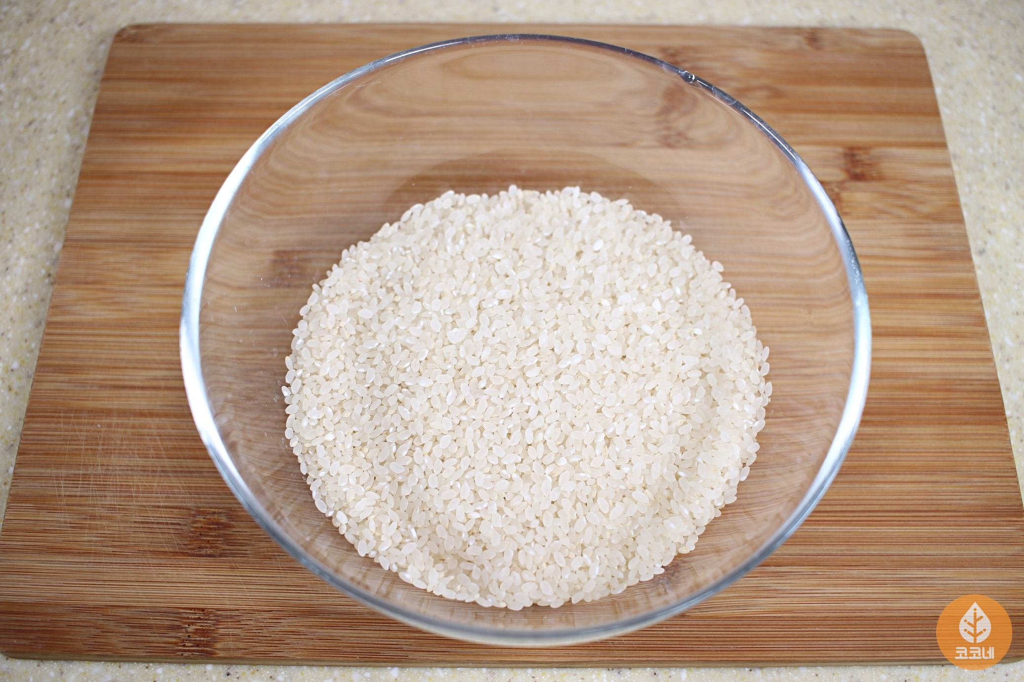 밥솥에 미리 불려놓은 쌀을 넣고