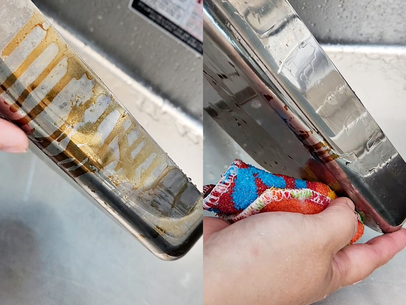 연마제 없이 주방세제만 묻혀서 문질렀는데요.