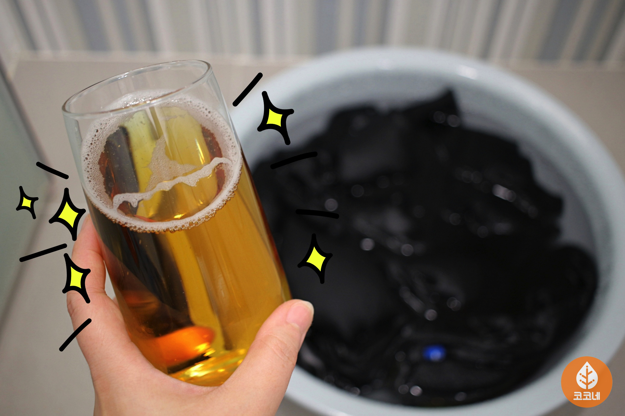 맥주가 아니라 소금물에 검정색 옷을 담가놓으면