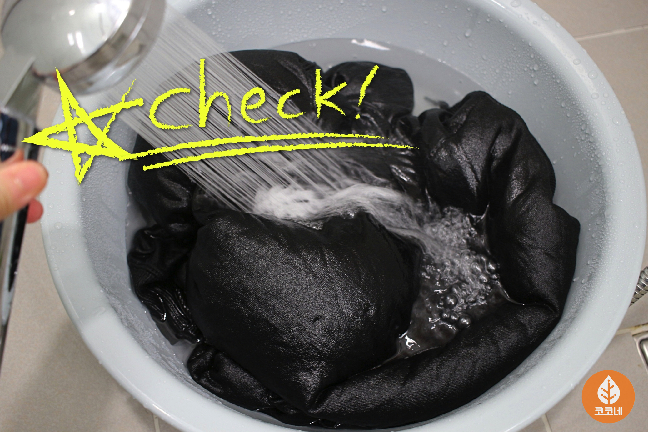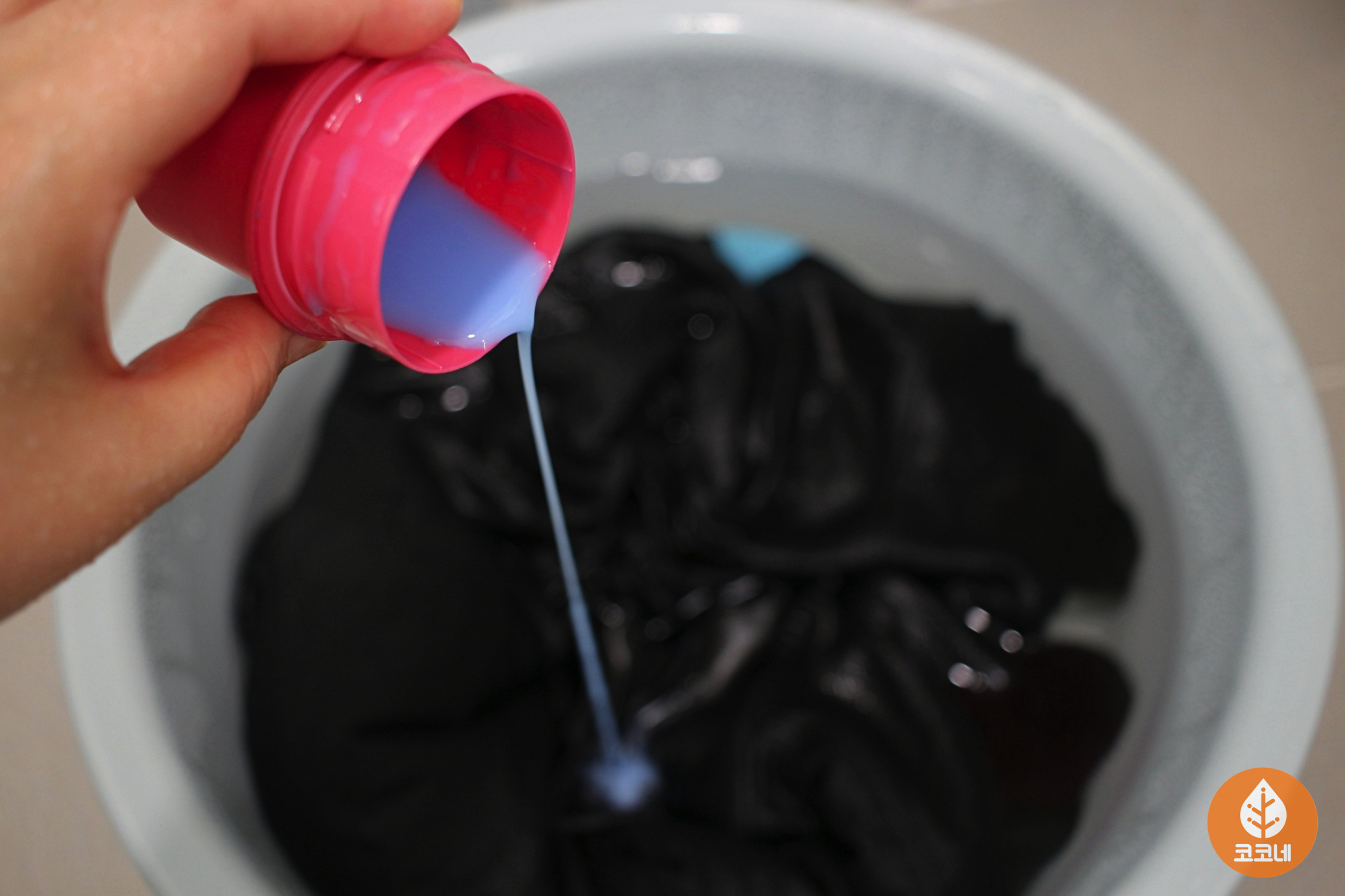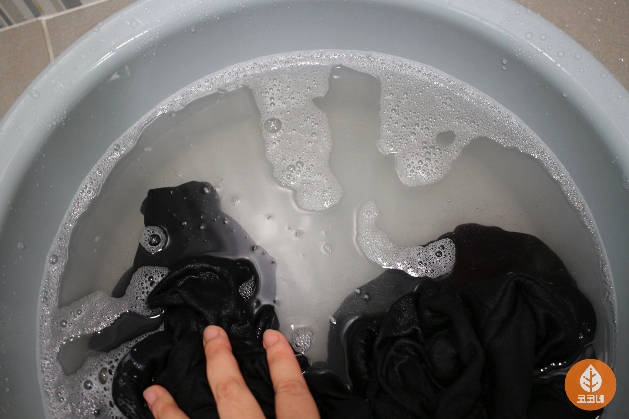 세숫대야에 검정색옷을 담고